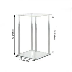 40″ Tall Silver Mosaic Mirror Wedding Column Pedestal With Pearls