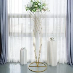 Gold 7 Feet Tall Metal Flower Display Stand Mermaid Tail Design Pedestal