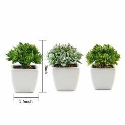 3 Pcs 4″ Assorted Green Artificial Faux Realistic Crassula Succulent Plants With Off White Pots