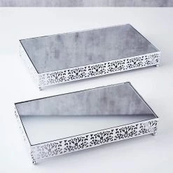 2 Metal With Mirror Glass Fleur De Lis Rectangle Cake Stands