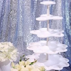 20 In Silver With Black 3 Tier Galvanized Metal Serving Trays Cupcake Holders Stand