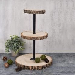 19 In 3 Tier Brown With Black Round Natural Wood Dessert Stand