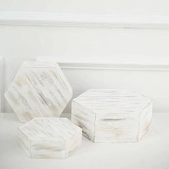 3 Whitewashed Wooden Cake Stand Hexagonal Dessert Display Boxes