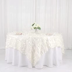 90×156 In White Satin Rectangle Tablecloth With Blue Floral Print