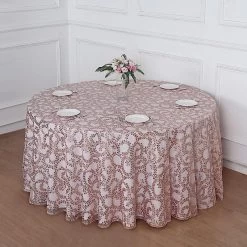 120 In Embroidered Leaves Sequined Sheer Tulle Round Tablecloth