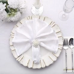 4 Silver And White Round Metal Dinner Napkin Rings With Faux Pearls And Rhinestones