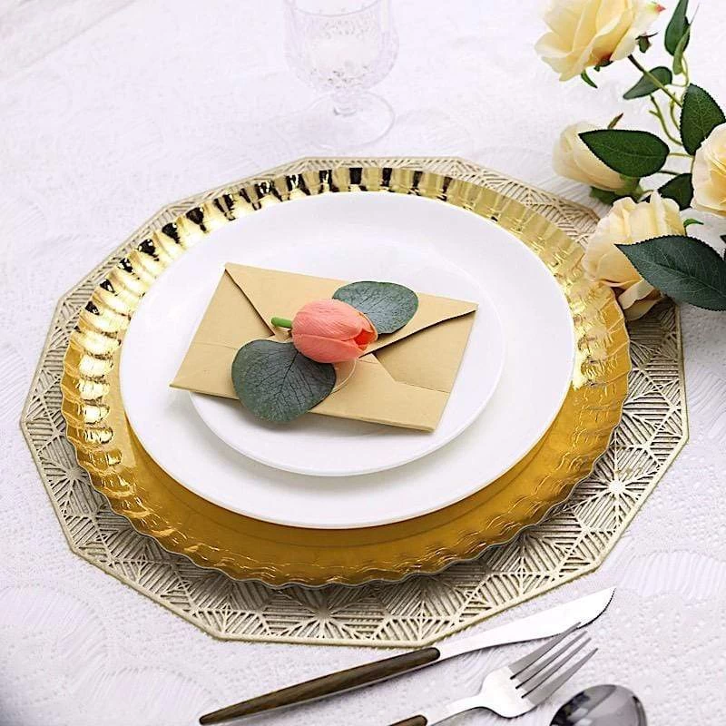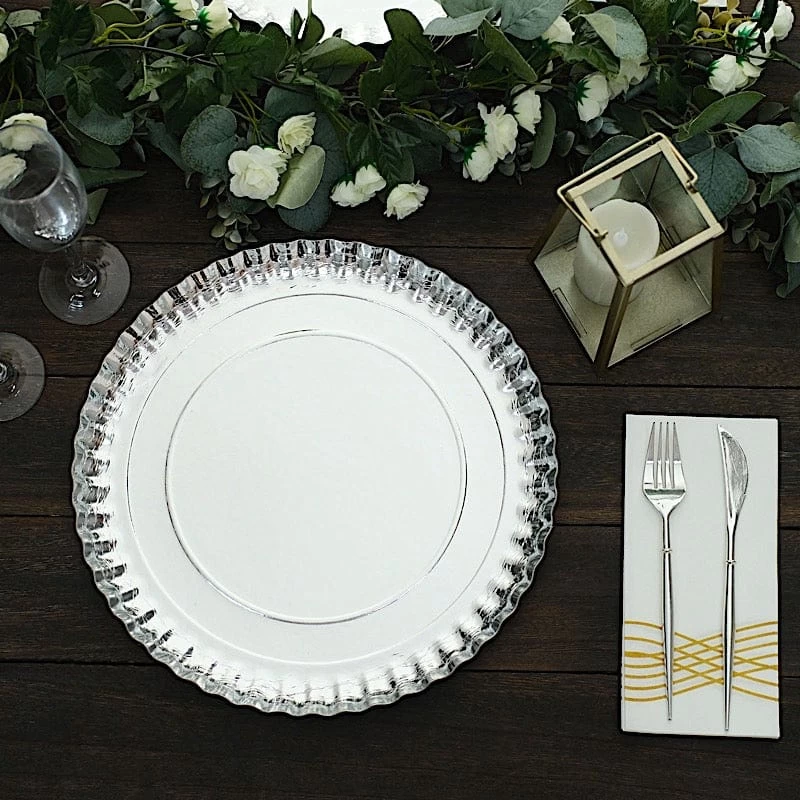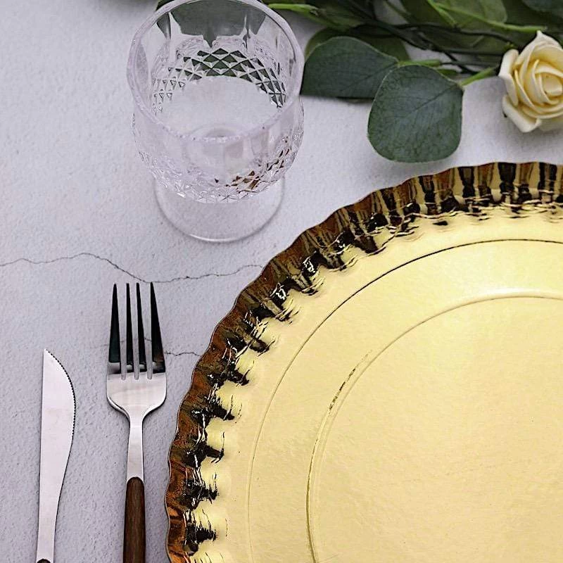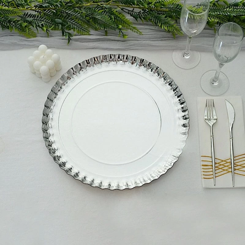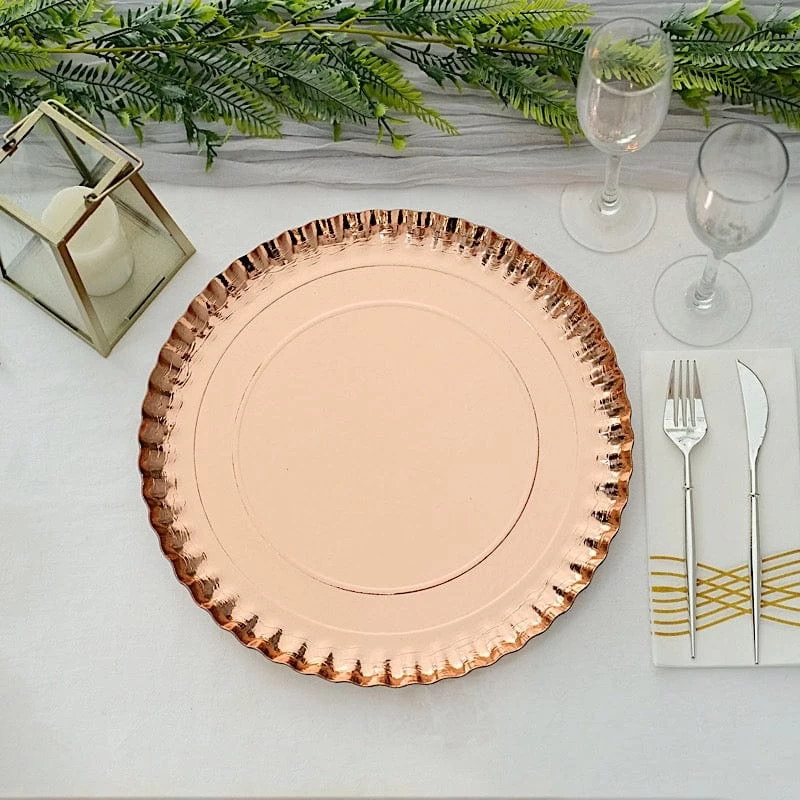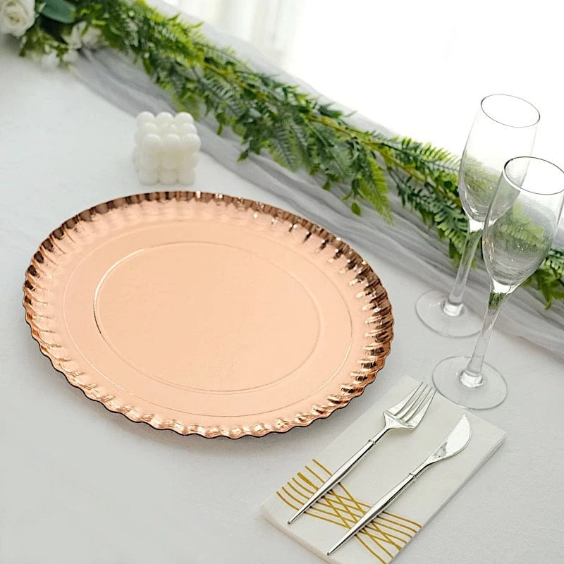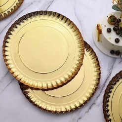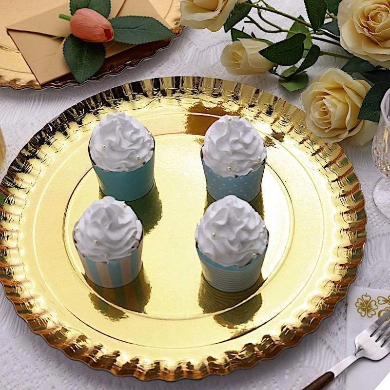 Nothing makes a practical and ideal addition to your fancy table settings like these elegant round paper serving trays! These cardboard paper trays with a scalloped rim design are great for serving your food, sweets and desserts in style. Pair them with your tableware or used as chargers to create the perfect look for your party tables. The perfect choice for fine dining occasions where fast cleanup is a must. Use these stylish paper serving trays for birthday parties, holiday dinner, weddings, bridal showers, baby showers and more.