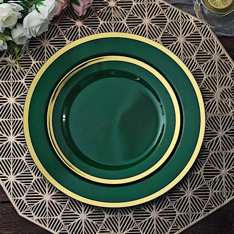 Entertainment just got easier. Serve your guests using these exquisite plates and let your great food to speak for itself! High quality plastic plates with metallic edges make any dinner or lunch look professional. A great choice for weddings, parties, holidays, bridal showers, birthdays, events or any casual or fine dining occasions.