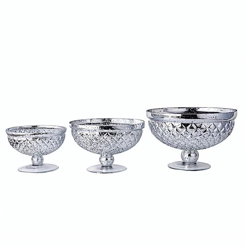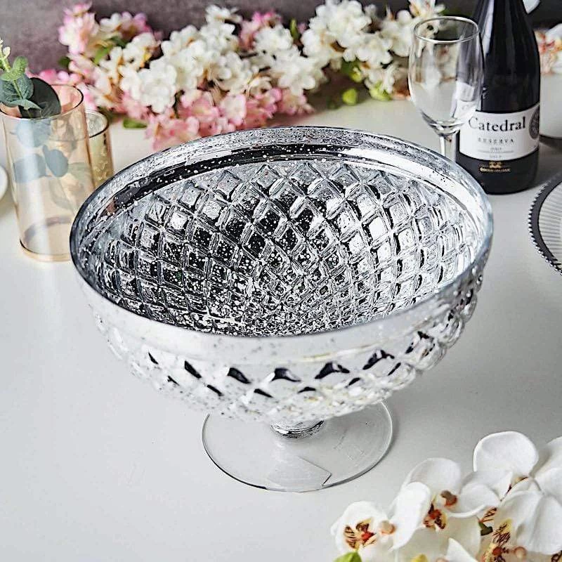 Make elegant and artistic decorations for your special day with our mercury glass compote vases! Our vases are great for weddings, parties, events or simply using them in your own home. Pair these trendy and delicate pieces with your gorgeous fresh or silk flowers, candles and other fillers to add a touch of glitz to your centerpieces. These decorative vases are made from heavy-duty mercury glass and are a top choice for flower shops and wedding planners.