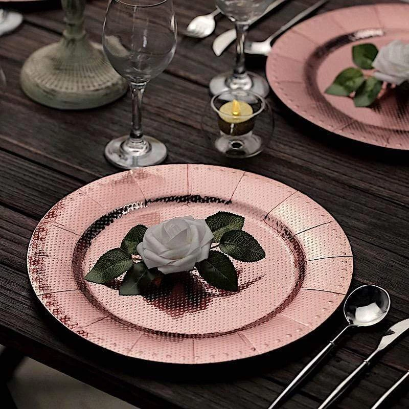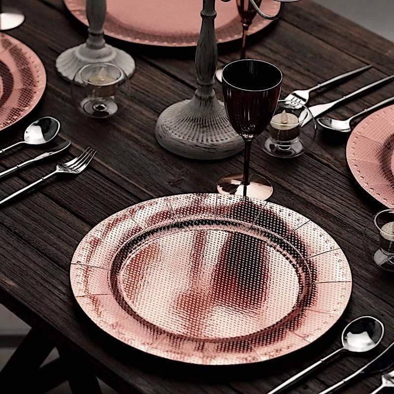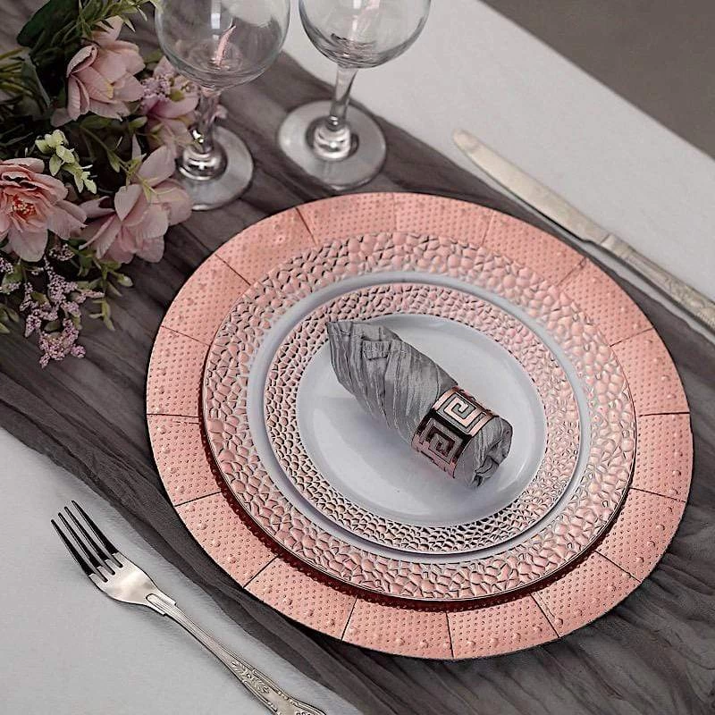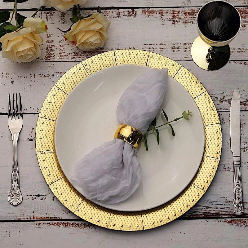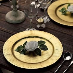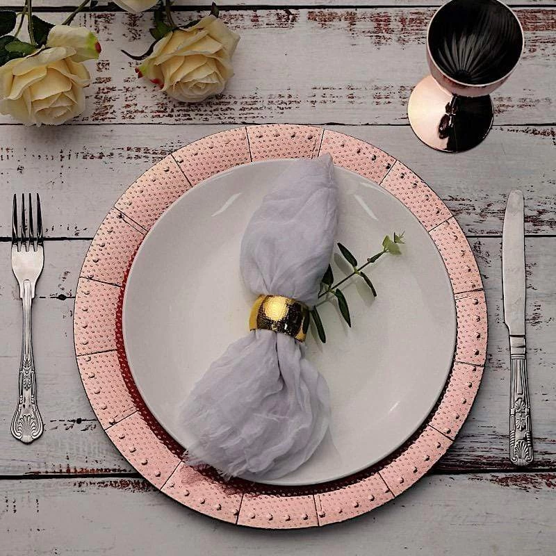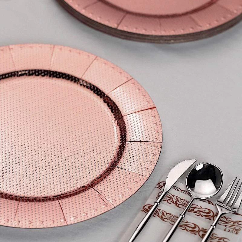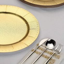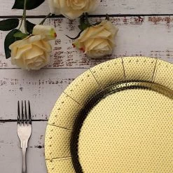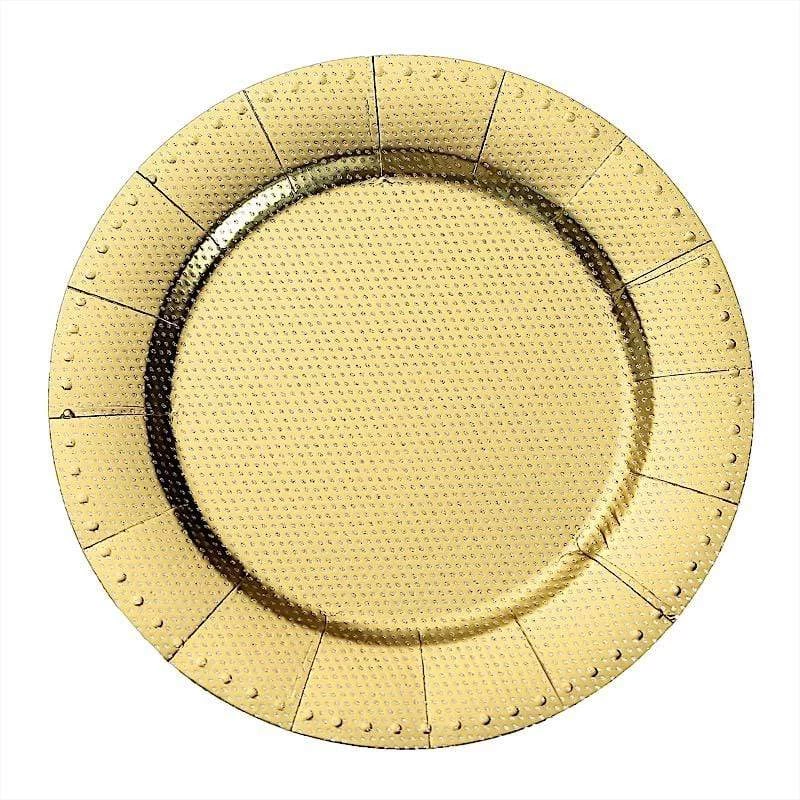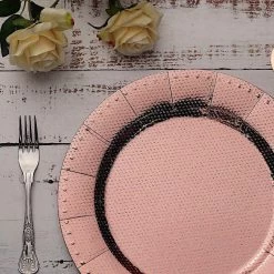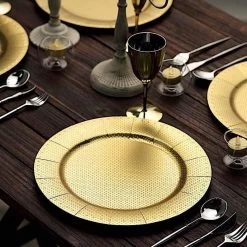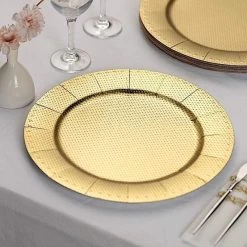 Nothing makes a practical and ideal addition to your fancy table settings like these elegant round paper charger plates! These cardboard paper chargers with a glitter textured design and dotted trim are great for serving your food, sweets and desserts in style. Pair them with your tableware to create the perfect look for your party tables. The ideal choice for fine dining occasions where fast cleanup is a must. Use these stylish disposable charger plates for birthday parties, holiday dinner, weddings, bridal showers, events and more.