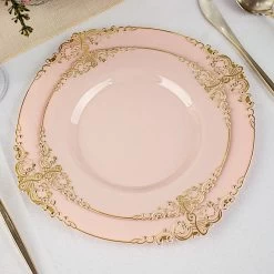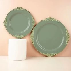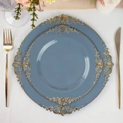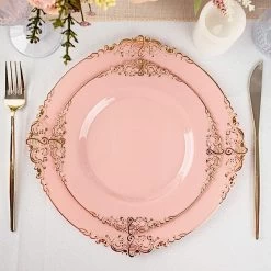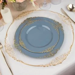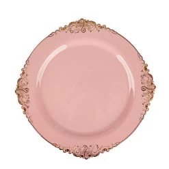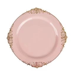 Entertainment just got easier. Serve your guests using these practical yet stylish plates and let your great food speak for itself! High quality plastic plates with embossed baroque rim designs will make any dinner or lunch look extraordinary. Perfect choice for fine dining occasions where fast cleanup is a must! Use these round plastic plates for weddings, bridal showers, baby showers, birthday parties or any special events.