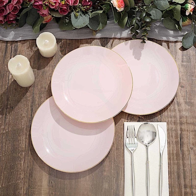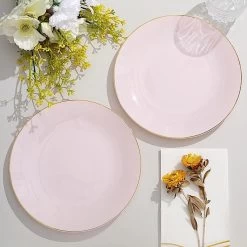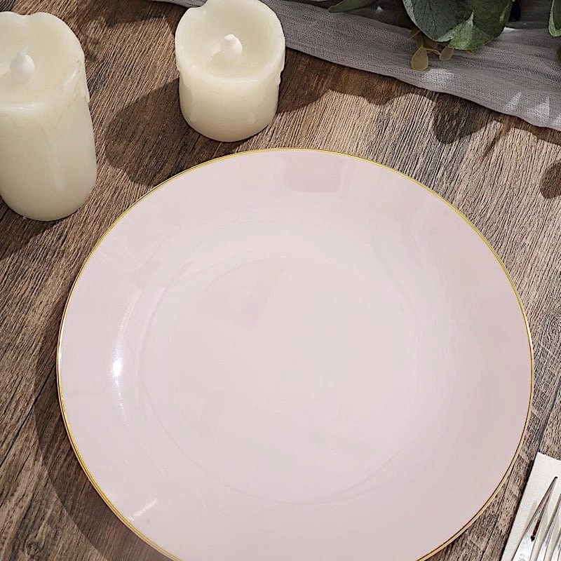 Entertainment just got easier. Serve your guests using these practical yet stylish plates and let your great food speak for itself! High quality plastic plates with a gold rim and elegant glossy finish will make any dinner or lunch look extraordinary. Perfect choice for fine dining occasions where fast cleanup is a must! Use these round plastic plates for weddings, bridal showers, baby showers, birthday parties or any special events.