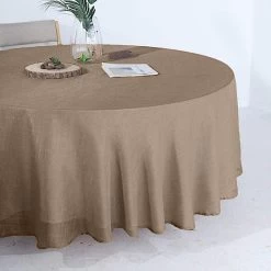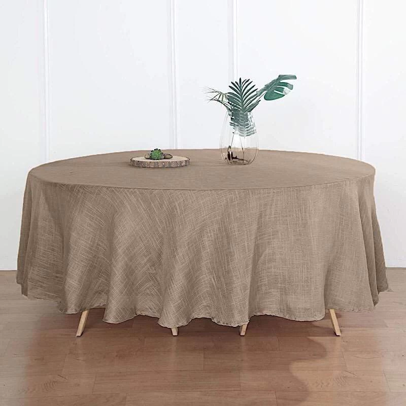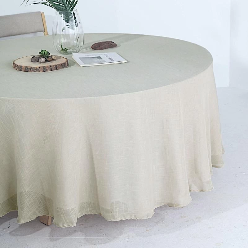 Crafted from a high quality polyester fabric with textured weaves, this faux burlap round tablecloth will be a great addition to your table decorations. These tablecloths with unique texture are sure to dress up your party tables with outstanding character and rustic chic. Perfect for small family dinners, get-together, outdoor weddings, parties, events and any special occasions.