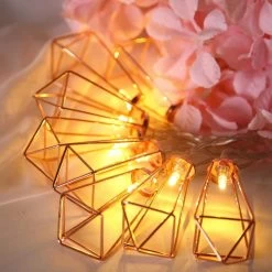Provide colorful lighting to any decorations with fairy lights from Balsa Circle. Create beautiful decorations for your wedding reception with metal geometric prism fairy lights! You’re not restricted to backdrops for these lights, use them on tables, centerpieces, pillars, arches and flowers to create fairy tale effect. These LED lights are battery operated with 3 AA batteries that are not included.