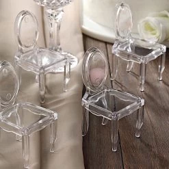 These cute and stylish favor holders will elevate the look of your dessert tables! Featuring an elegant chair-shaped design, these plastic favor holders will perfectly display your chocolates, candies, small gifts or any special treats. Ideal for baby showers, birthday parties, weddings, graduations or any special events. These mini chair favors are also great as place card holders or decorative accents to bring a fun and festive atmosphere to your celebration. The possibilities are endless!