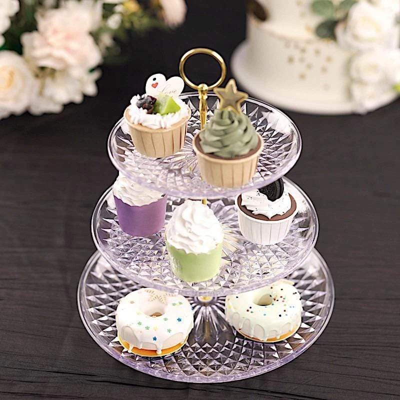 Celebrate your day with something that is both decorative and functional! This plastic cupcake holders stand will make a stylish dessert display for your weddings, birthdays, parties or any special gatherings. With 3 crystal clear round trays to fill with cupcakes, muffins or any sweet treats, this display stand will elevate the look of your dessert tables. Pair with flowers arrangements and backdrops for an outstanding dessert table decoration. Great for birthdays, weddings, parties or any special gatherings.