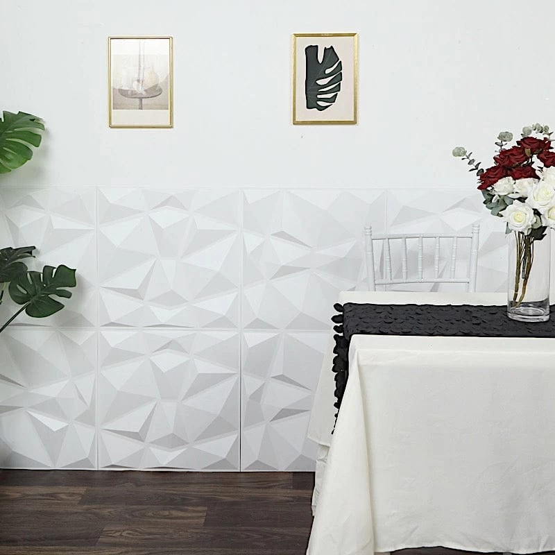 Add style to your space with these modern wall panels. Featuring a 3D diamond-like design with a matte finish, these square PVC wall tiles can transform any setting with visually striking feature walls. Perfect for creating an elegant accent for any surfaces, home, dorm or office interior decorations. Cut to your desired sizes and shapes and easily stick them on your wall using strong adhesives. These functional wall panels will help you create a trending artistic wall decor in an instant. The possibilities are endless!