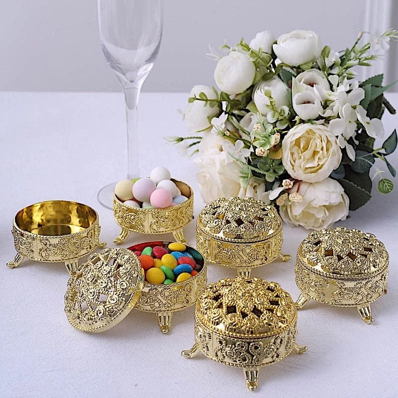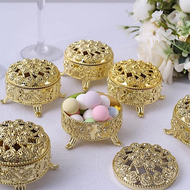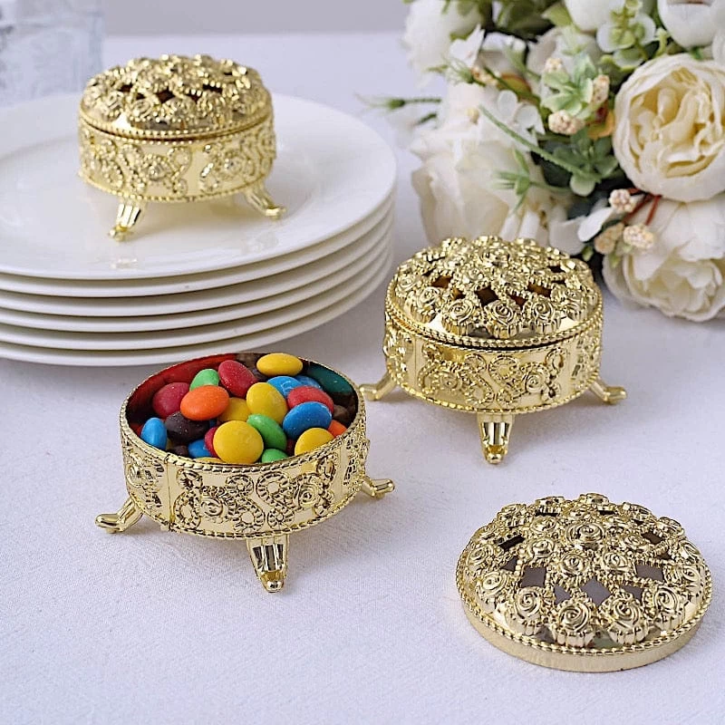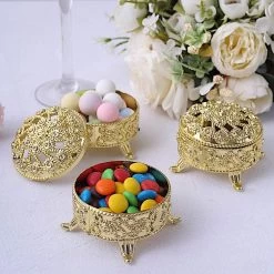 Entertainment just got easier. Serve your guests using these individual plastic favor boxes and let your great food speak for itself! These cute round gift boxes with covers are the ideal favor holders for baby showers, kid’s birthday parties, weddings, graduations or any special events! Each favor holder is made from high-quality plastic with an elegant metallic finish. Perfect for presenting your small treats, party favors, candies, chocolates or any gifts you can think of. Use them as decorative accents to bring a fun and festive atmosphere to your celebration. The possibilities are endless!