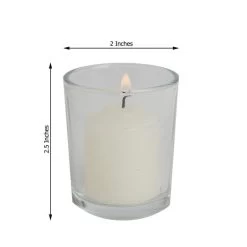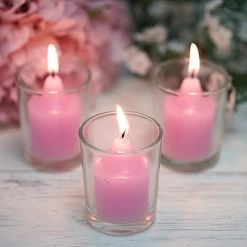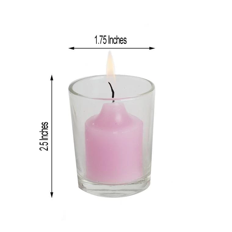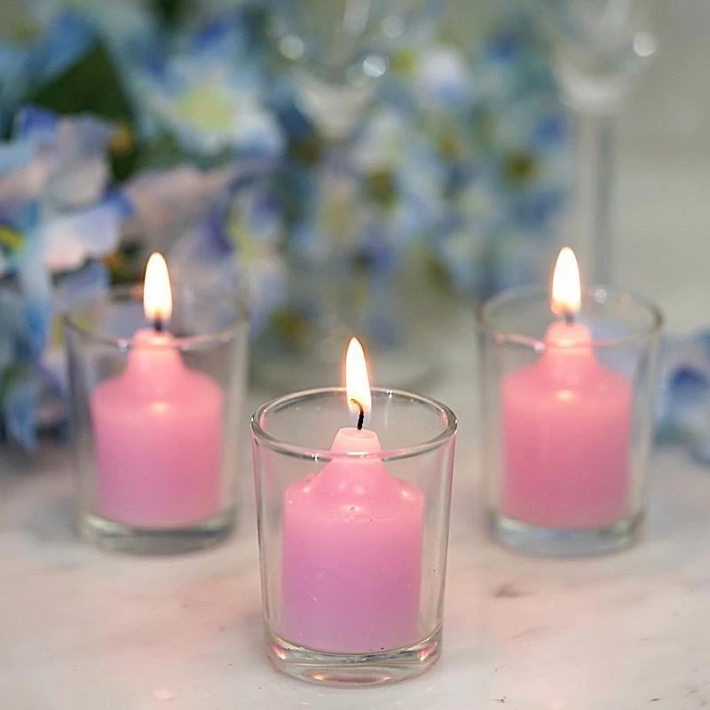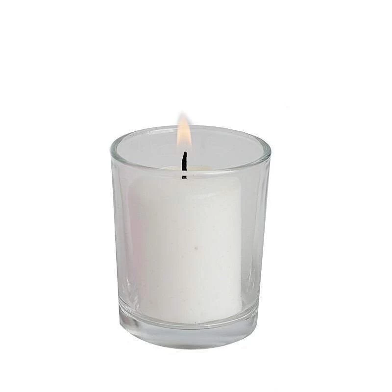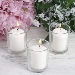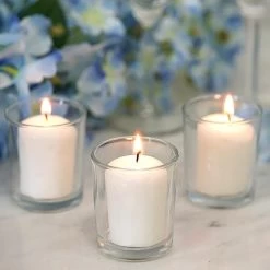 Accent your special day with our elegant and classic votive candles! These round candles with clear glass holders are great for setting the perfect mood at weddings, dinner parties and seasonal events as they light your world with flickering light. With plenty of colors to choose from, these candles will be a great gift and a warm bright addition to your home decorations.