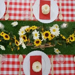 Celebrate your special day with your reception accented with these beautiful artificial grass table runners. Each table runner with seamless design will drop 24″ from each side of a standard 60″ wide table. Dress up your dinner tables with ease and make your reception look truly special!