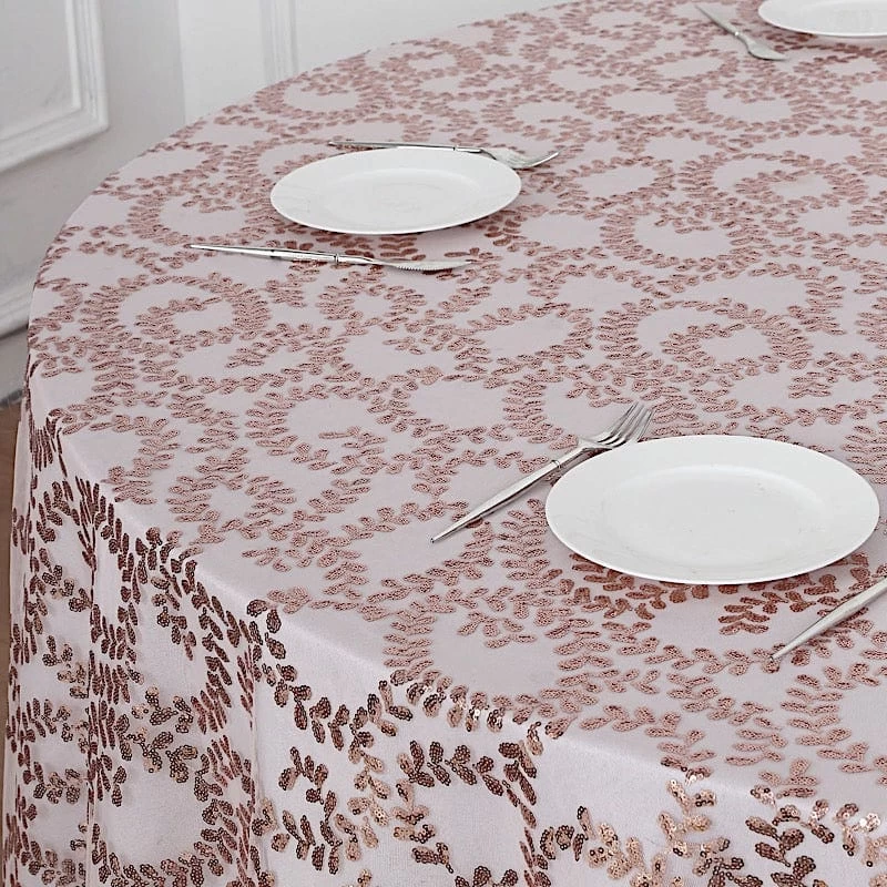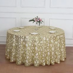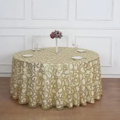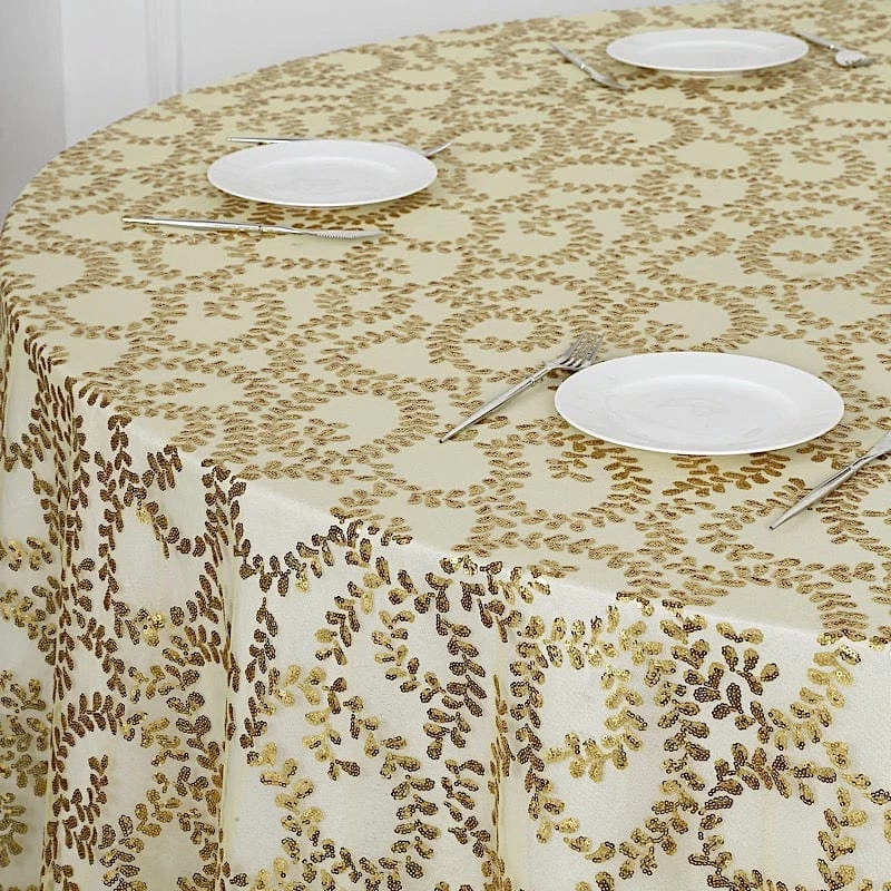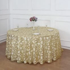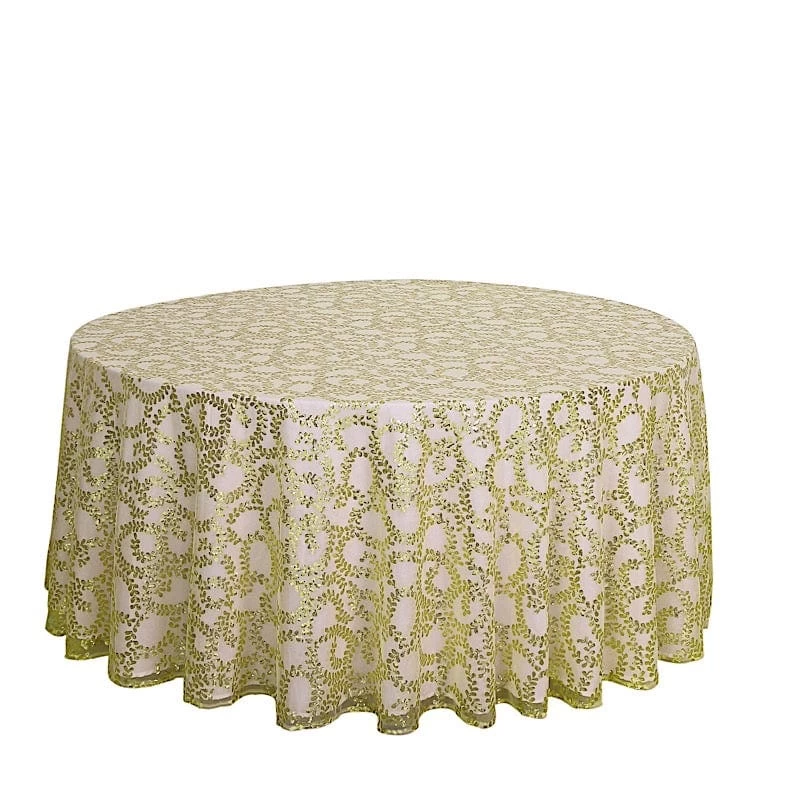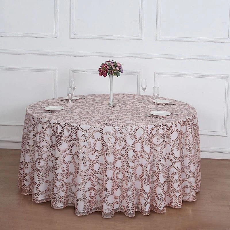 Add elegance to your party and accessorize your tables with dazzling round tablecloths! This dining tablecloth will add style to your table decorations. High-quality sheer tulle fabric with embroidered leaves design and sparkling sequin accents will create an impressive look for your table setting. Whether for small family dinners, get-togethers, weddings or any special events, this round tablecloth is just perfect to dress up your party tables!