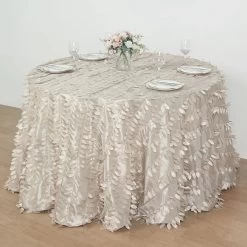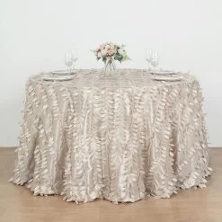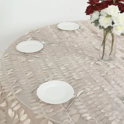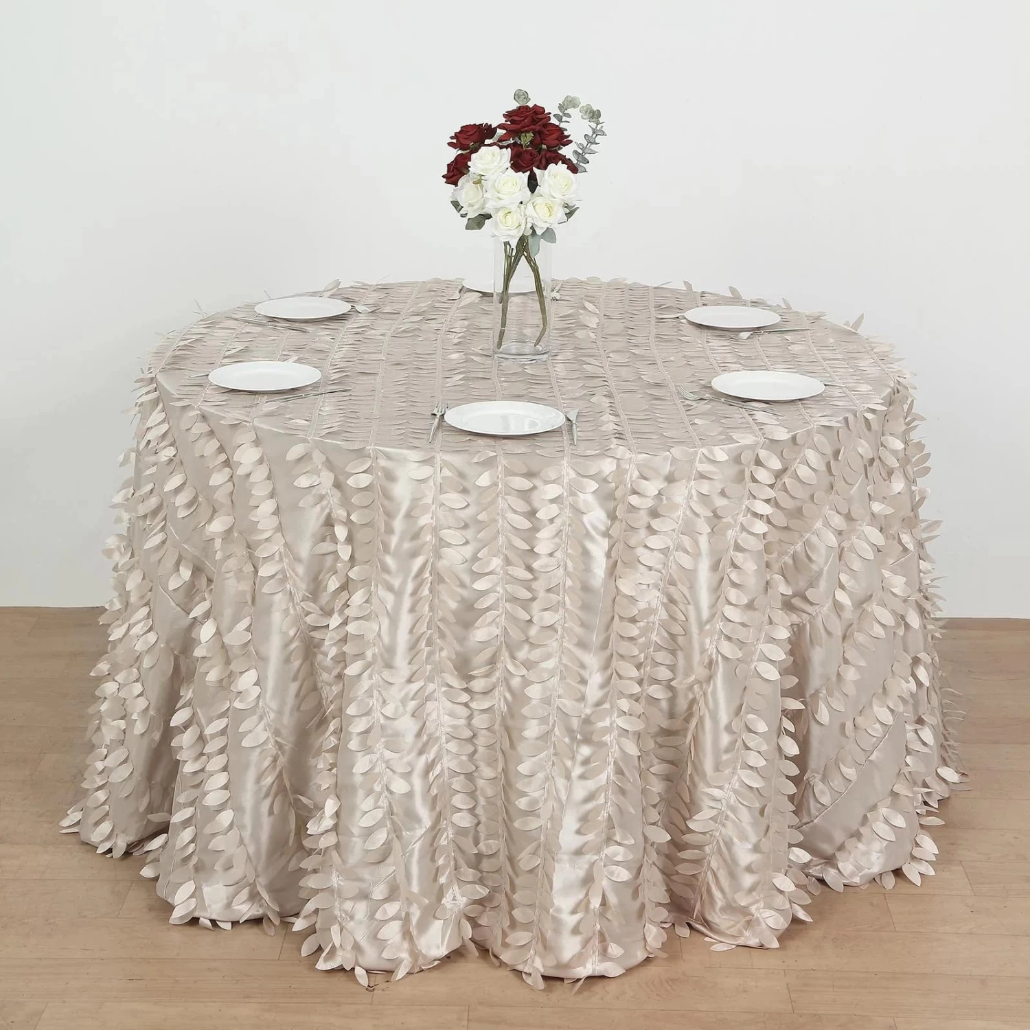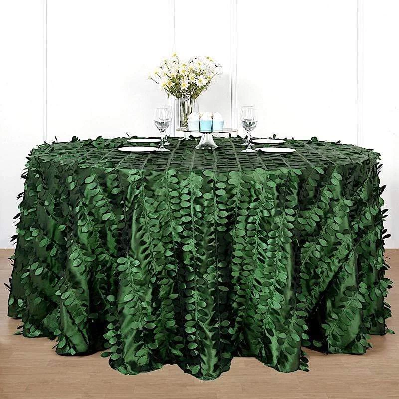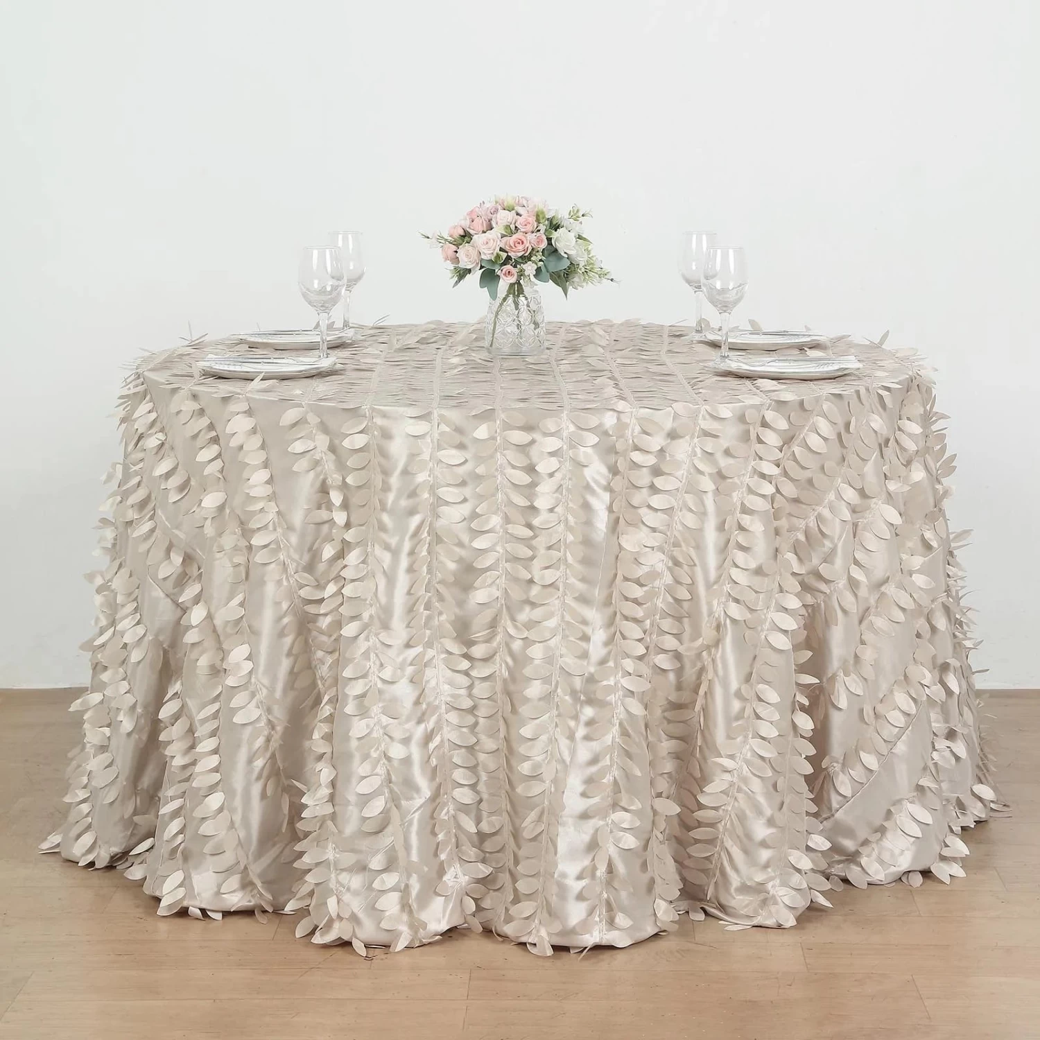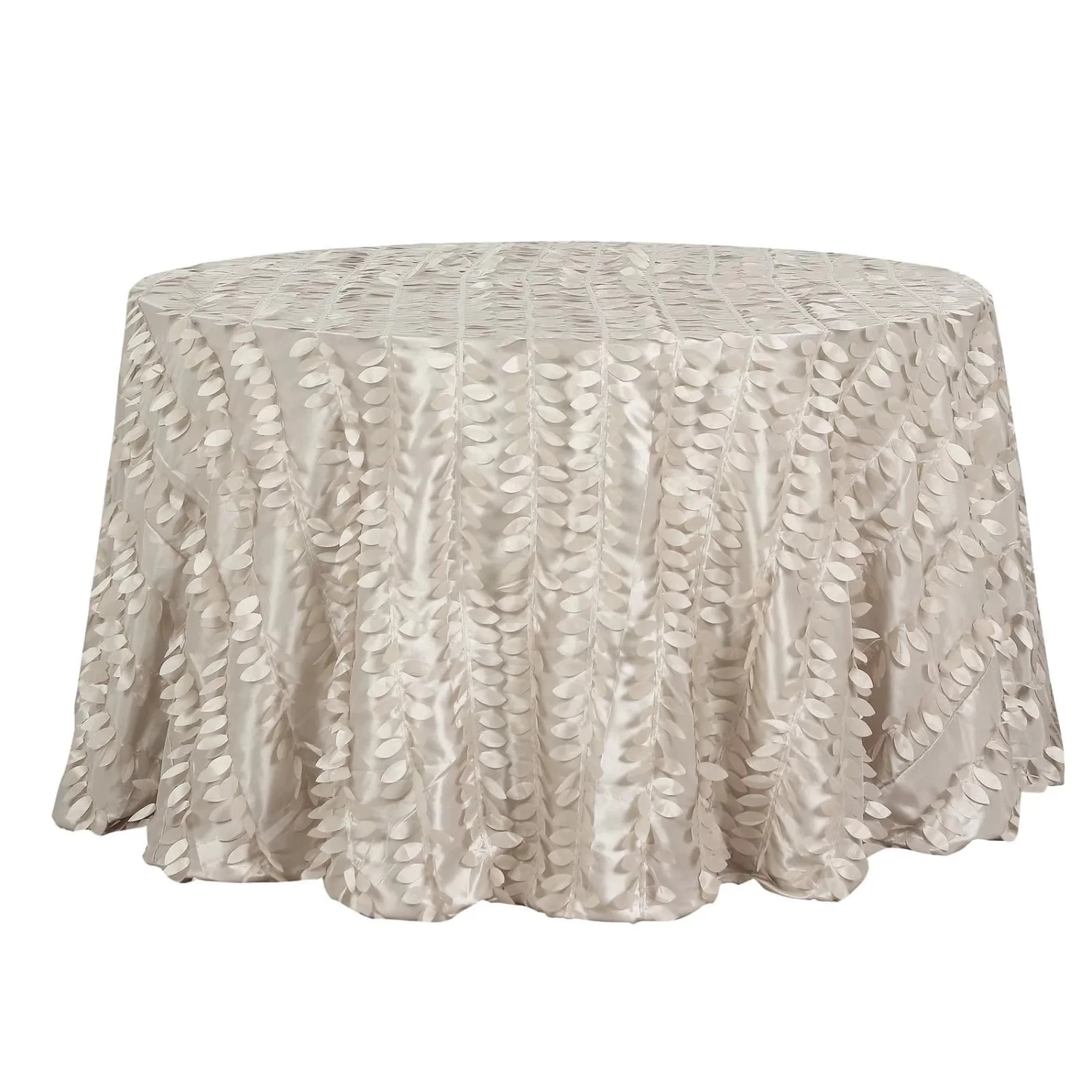 This unique taffeta round tablecloth is designed with life-like leaf petals that will create an earthy look and add texture for your party table setting. Perfect for any nature-themed celebrations, indoor or outdoor weddings, parties or any special gatherings. High quality, smooth textured taffeta fabric easily creates elevated natural woodsy look and the perfect ambiance for any special occasion. Pair this round tablecloth with other tabletop decorations for a truly unforgettable dining experience. Also a great gifting idea!