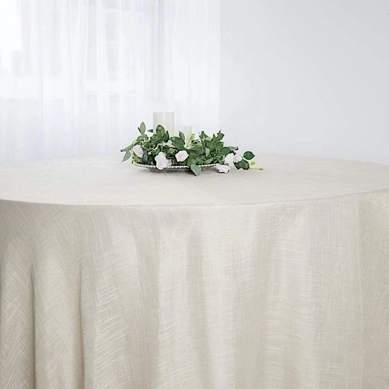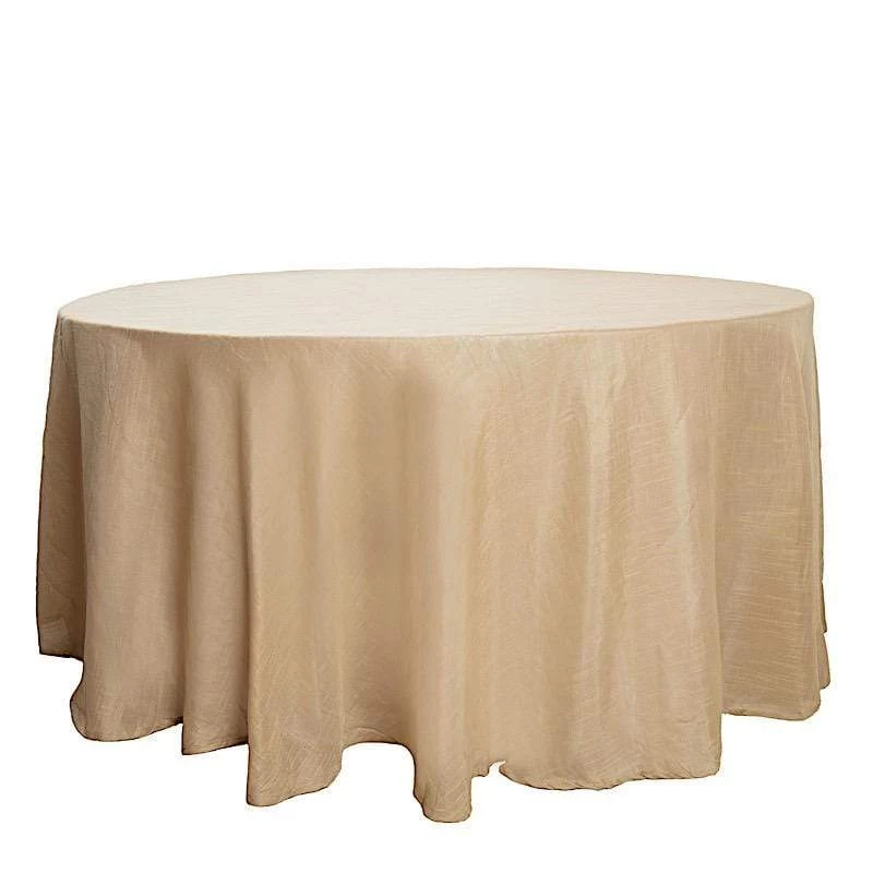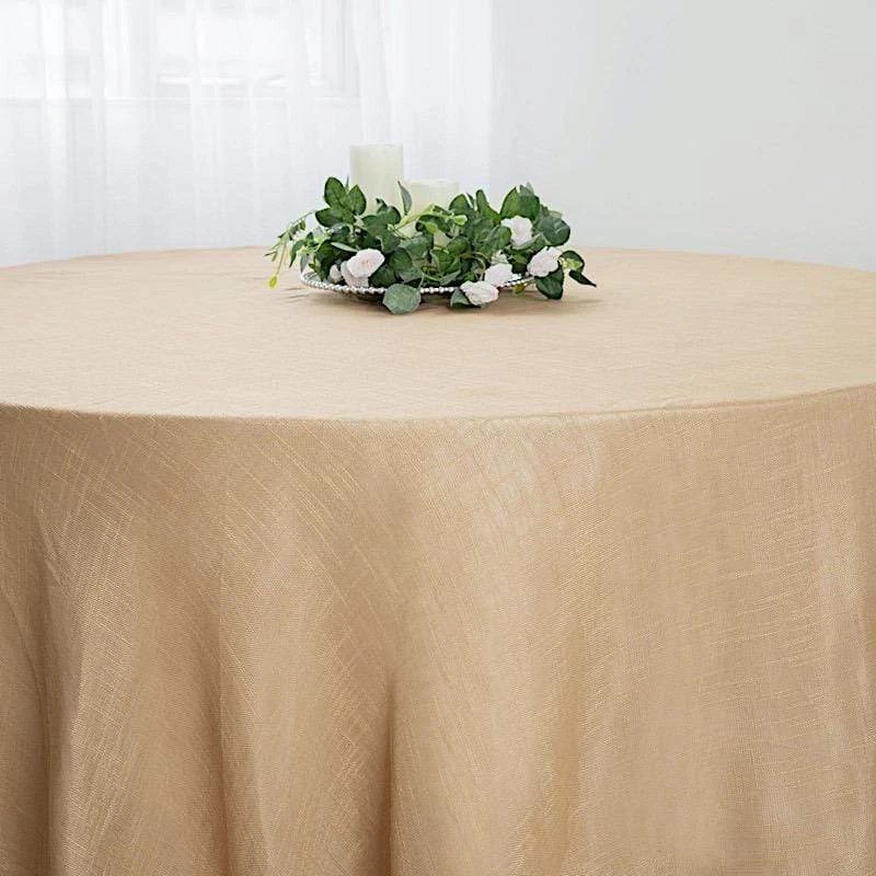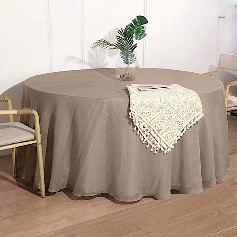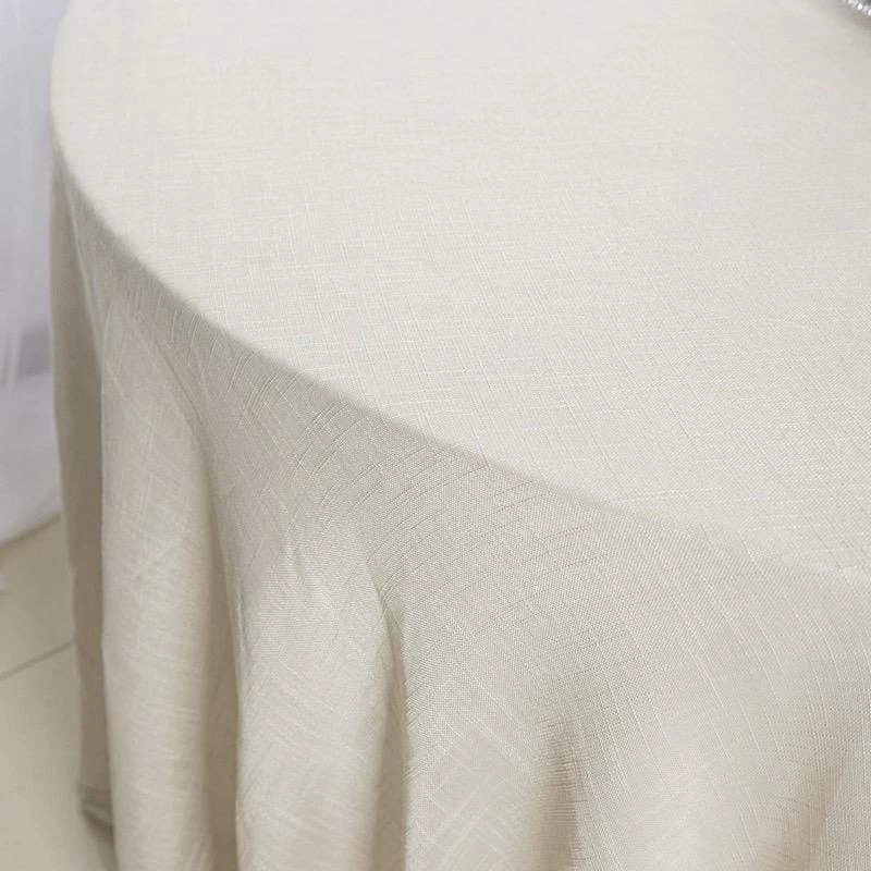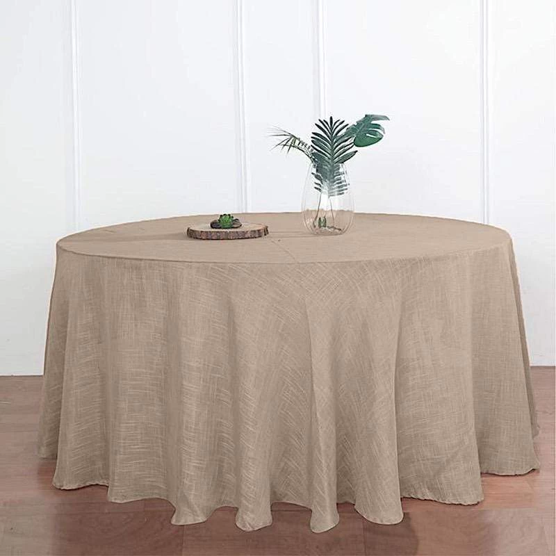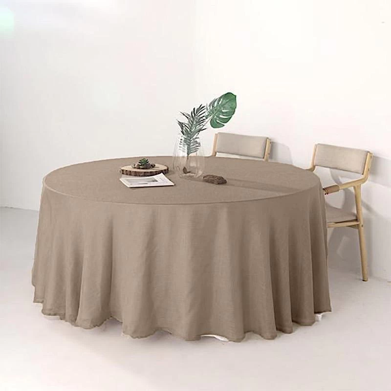 Crafted from a high quality polyester fabric with textured weaves, this faux burlap round tablecloth will be a great addition to your table decorations. These tablecloths with unique texture are sure to dress up your party tables with outstanding character and rustic chic. Perfect for small family dinners, get-together, outdoor weddings, parties, events and any special occasions.