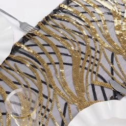 Bring a dazzling look to your party and accessorize your tables with high-quality mesh fabric with sequin table runners. This dining table runner with sparkling wavy embroidered sequin accents will create an elegant look and the perfect ambiance for any special occasion. Perfect for your weddings, parties, events, bridal showers, anniversaries, birthdays and more. Pair this table runner with other matching linens and tabletop decorations for a truly unforgettable dining experience!