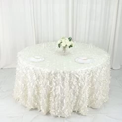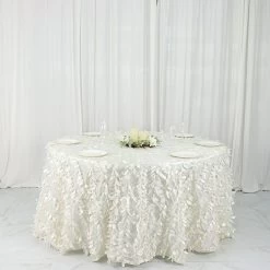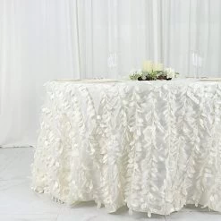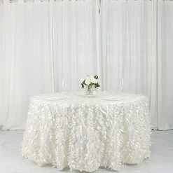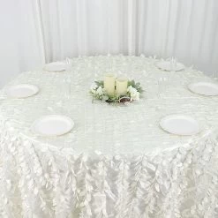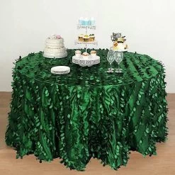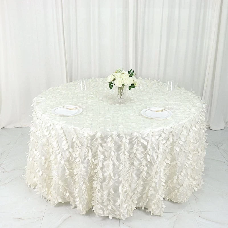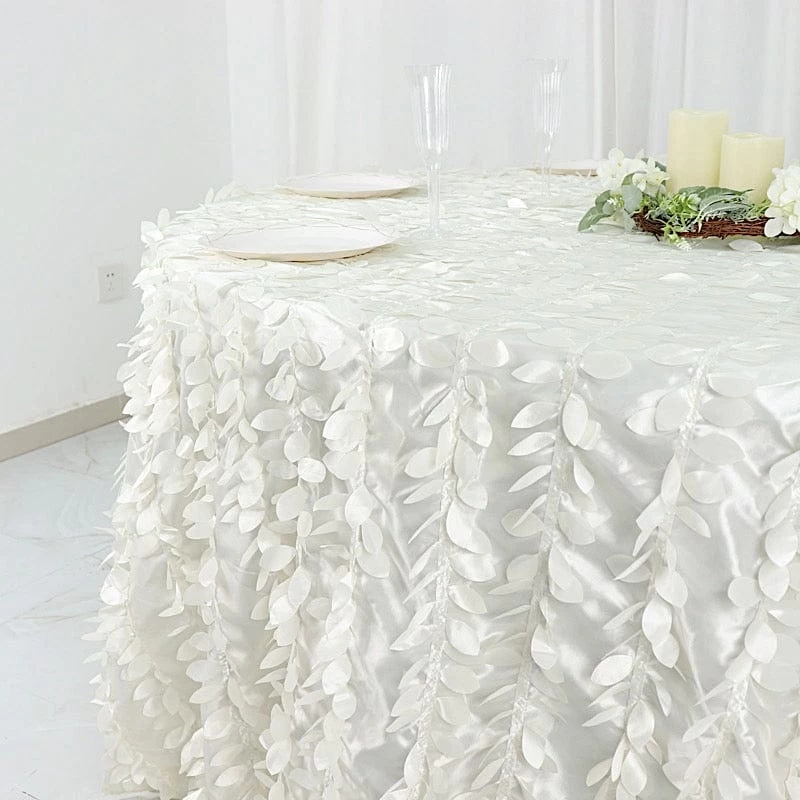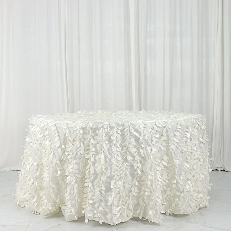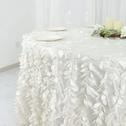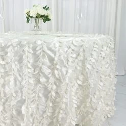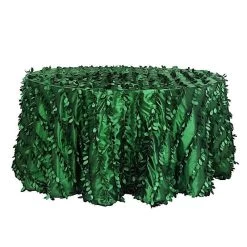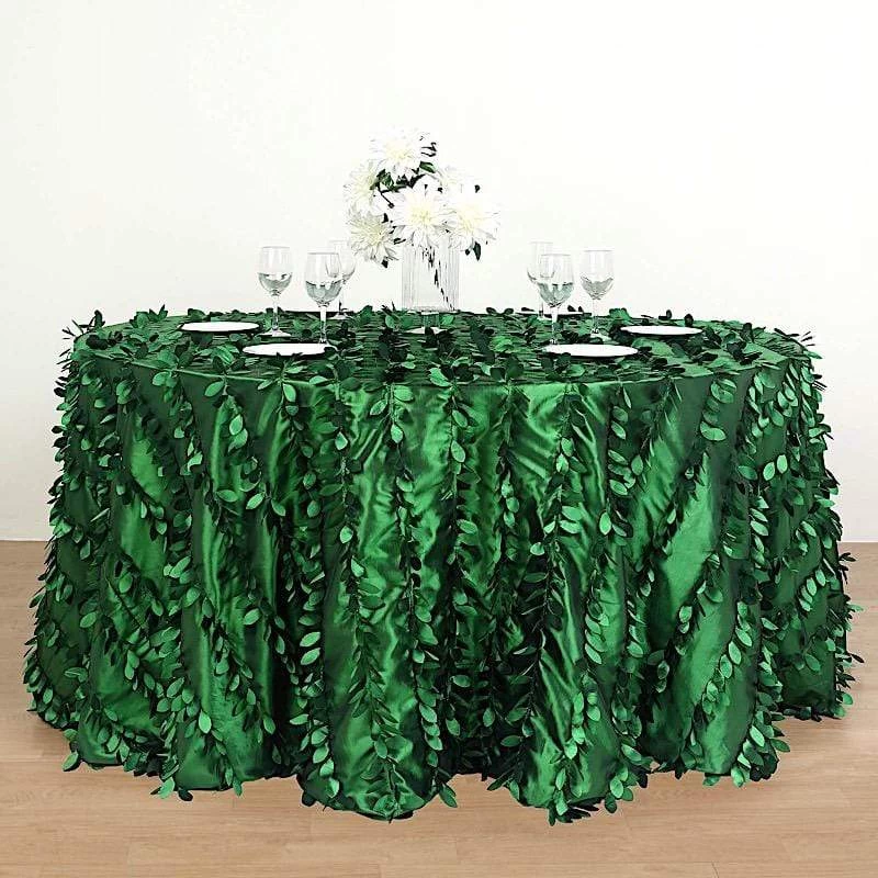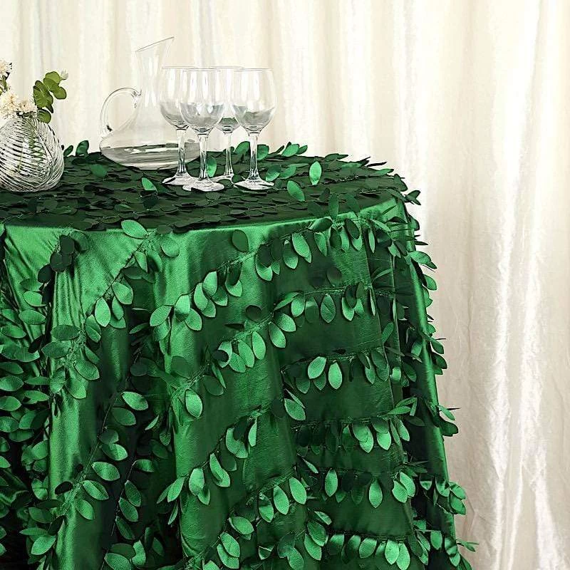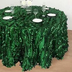 This unique taffeta round tablecloth is designed with life-like leaf petals that will create an earthy look and add texture for your party table setting. Perfect for any nature-themed celebrations, indoor or outdoor weddings, parties or any special gatherings. High quality, smooth textured taffeta fabric easily creates elevated natural woodsy look and the perfect ambiance for any special occasion. Pair this round tablecloth with other tabletop decorations for a truly unforgettable dining experience. Also a great gifting idea!