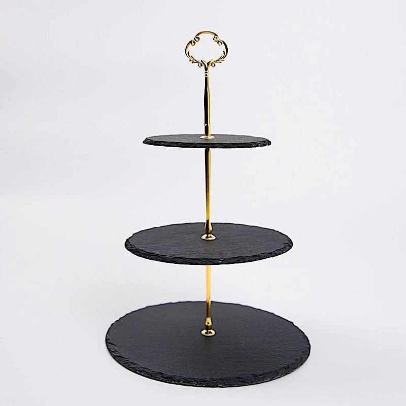 Celebrate your day with something that is both decorative and functional! Natural stone plates and high quality plastic poles come together in this modern dessert stand. Use it as a centerpiece with your elegant candles, floral arrangements and more. Place it on your dinner tables with your drinks, appetizers, cakes, desserts or any delicious food you can think of. The possibilities are endless! This 3-tier dessert display stand is great for weddings, rustic themed parties, events or your home.