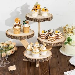 Celebrate your day with a dessert stand that is both decorative and functional! Slices of round natural wood with sturdy base make this rustic dessert riser. Create a woodsy charm for your next party by placing it as a centerpiece with an elegant candlescape, floral arrangements and more. Place it on your dinner tables with your drinks, appetizers, cakes, desserts or any delicious food you can think of. The possibilities are endless! This wooden dessert display stand is great for farmhouse style weddings, rustic-themed parties, events or your home. It is also a perfect gift for family and friends.