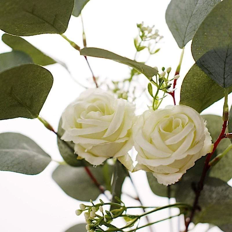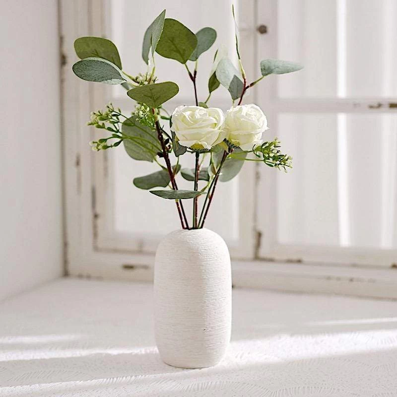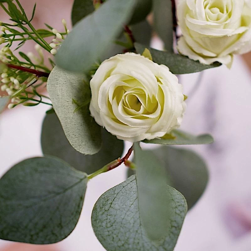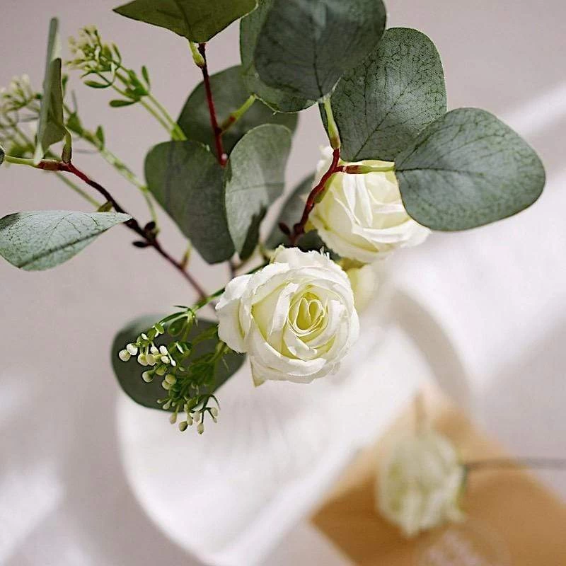 Add a touch of nature to your party or living space with seeded eucalyptus leaves and rose flower stems. Whether used individually or team up, this bouquet of flowers and greenery will make beautiful floral arrangements and centerpieces. The bendable stems make it a great addition to your craft projects. Use these silk flowers and greenery as accents for your bridal bouquets, vases, backdrops, tablescapes and home decorations. The possibilities are endless!