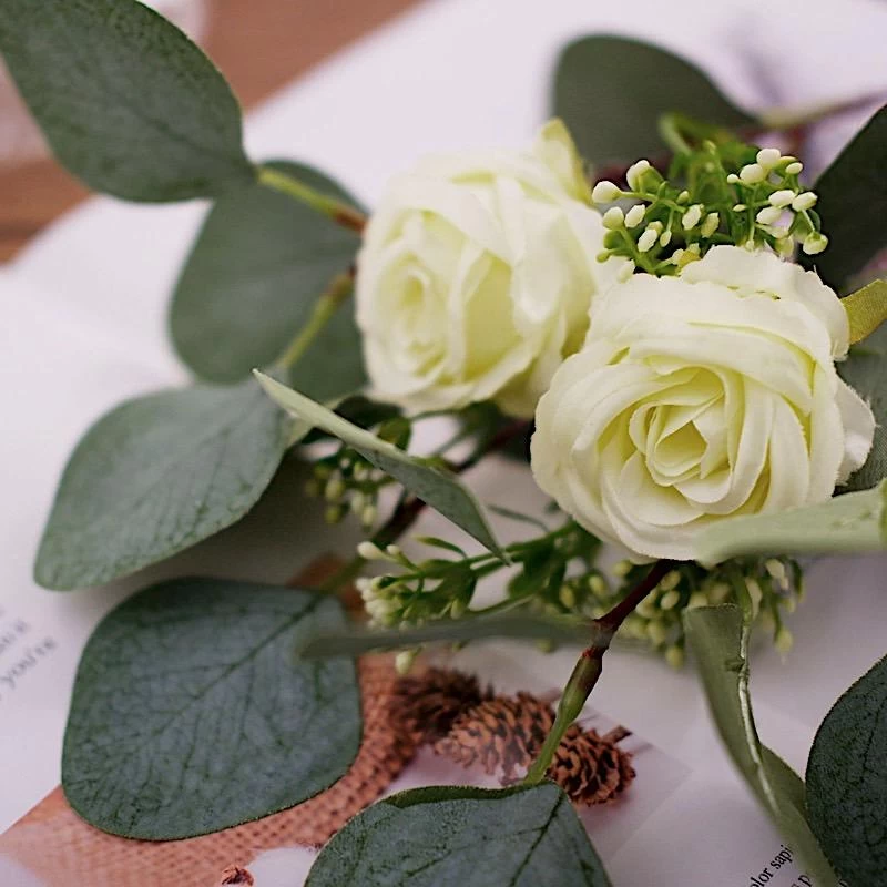 Rose flowers can be used individually or together with the eucalyptus stems.