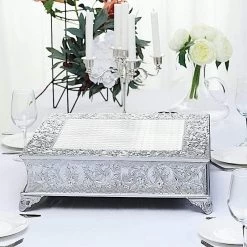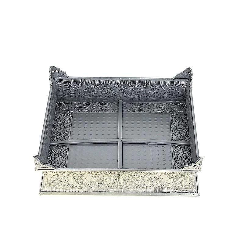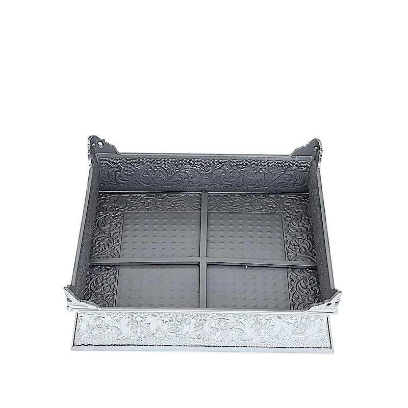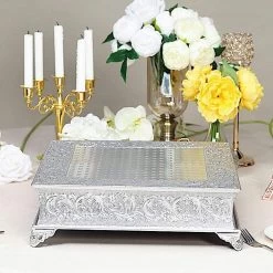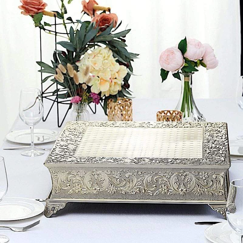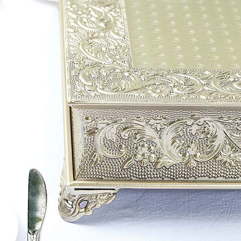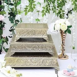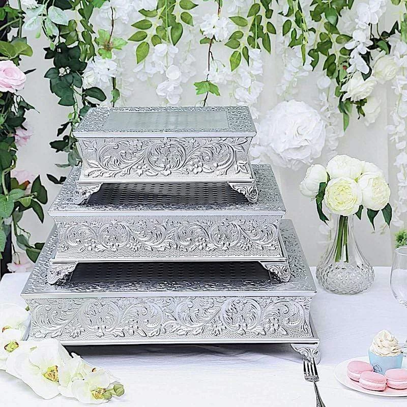 Display your desserts in style with this elegant cake stand. These square cake plateaus with side and top embossed designs will help to serve your sweet treats with outstanding elegance. Perfect for all occasion cakes, cupcakes or other goodies, this is just the cake stand you need to bring sparkle to your celebration!