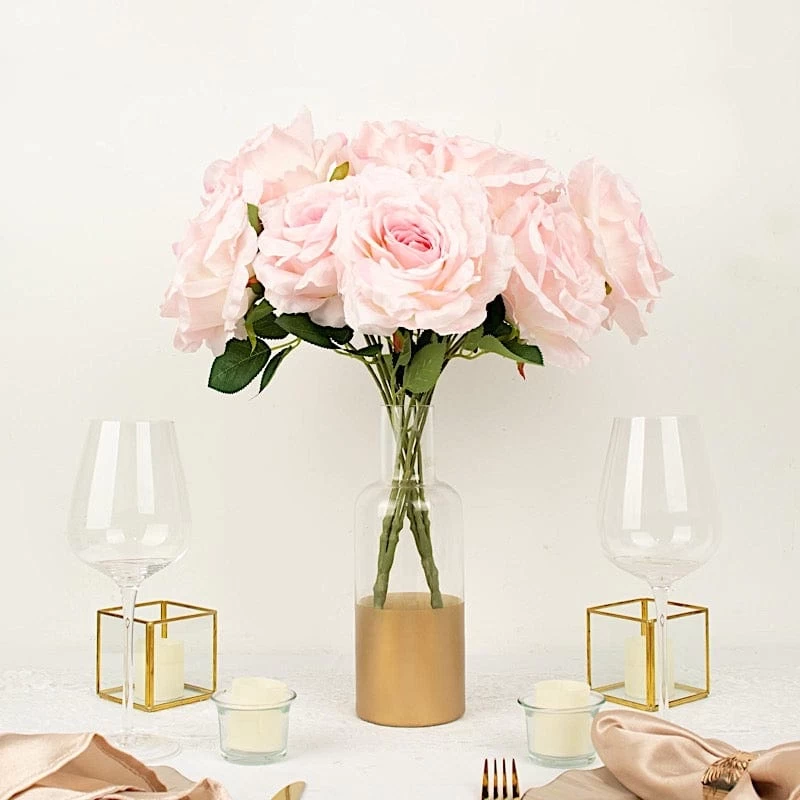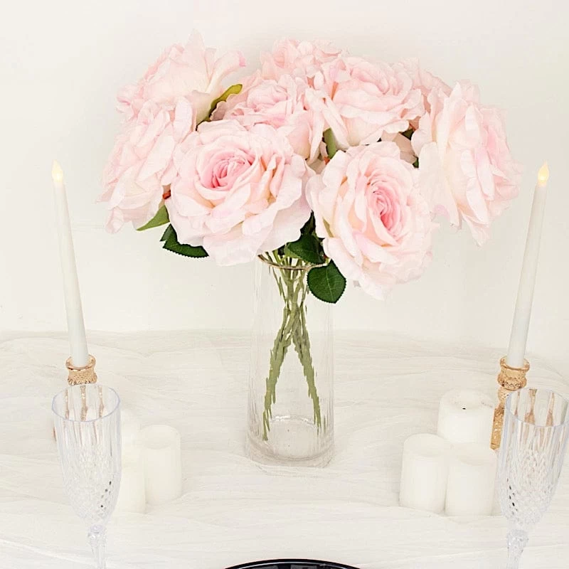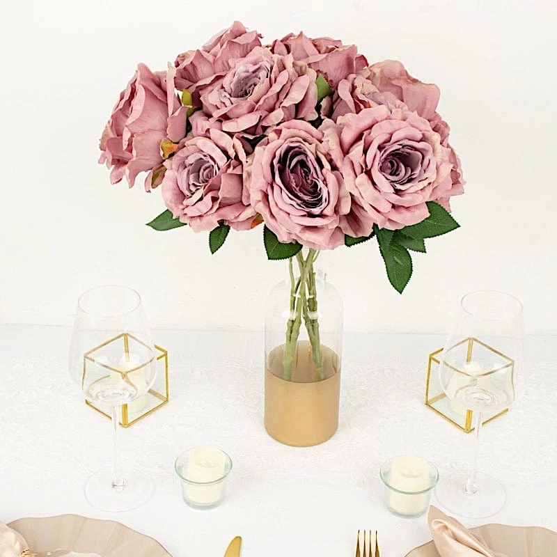 Decorate your special day with silk rose flowers! These full and beautiful artificial flowers with bendable wired stems are made with great attention to detail making them an excellent addition to your own projects and designs. Use them in a bridal bouquet or make a custom centerpiece. The fresh-picked look of these high-quality silk roses will complete your wedding flower arrangements and delight your guests.