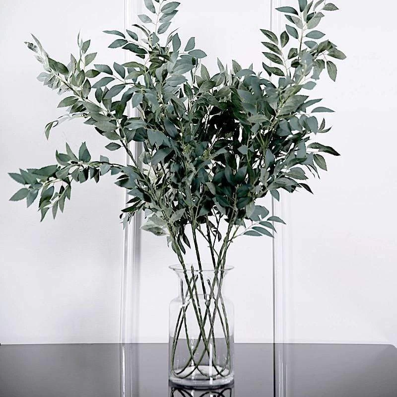 The decorating possibilities are endless with these greenery leaves! Offering a variety of decorative purposes, these leaves will allow you to easily add your personal touch to any floral arrangements for home, wedding, anniversaries, bridal showers, and party decorations. The stem can be trimmed as needed to fit your projects. Mix and match with colorful artificial or real flowers and greenery to create beautiful centerpieces and arrangements.