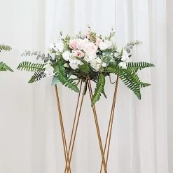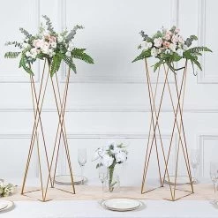 Enhance your special day with stylish flower stands! Crafted from metal, these stands provide a contemporary look with an openwork, crisscross geometric design and a gold finish for a modern flair. This set of flower pedestals is easy to pair with other tabletop decorations and can be accented with a variety of flowers and greenery. Perfect for weddings, events and parties as centerpieces, or simply as decorative pieces for your home or office.