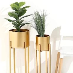 Bring a botanical charm inside or outside of your home with these decorative planters. This set of plant stands is made of high quality metal with removable round pots to keep your favorite blooms and greenery secured and stylishly displayed. Great for adding a modern look to any indoor or outdoor space, you can place this plant stand in your home living room, patio, backyard or in your office to add a positive vibe. Ideal to enhance the setting for your weddings, parties or any events. Also a perfect gift for family and friends.