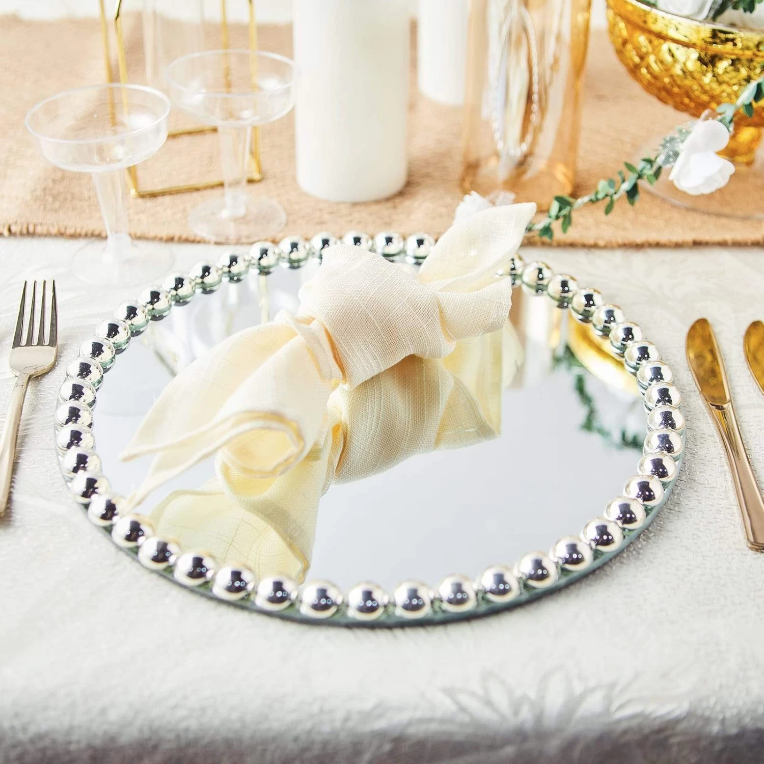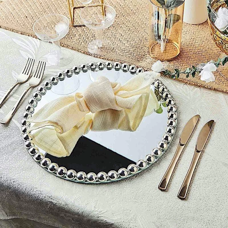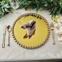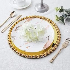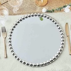 Don’t just eat your food. Celebrate it! These chargers come with lovely edge details that make them perfect for special occasions like holiday dinners, bridal showers, graduation luncheons, birthday parties and more. Put the fancy back in your food with a true one-of-a-kind presentation. These glass chargers with pearl beaded trim will make an elegant accent to any setting.