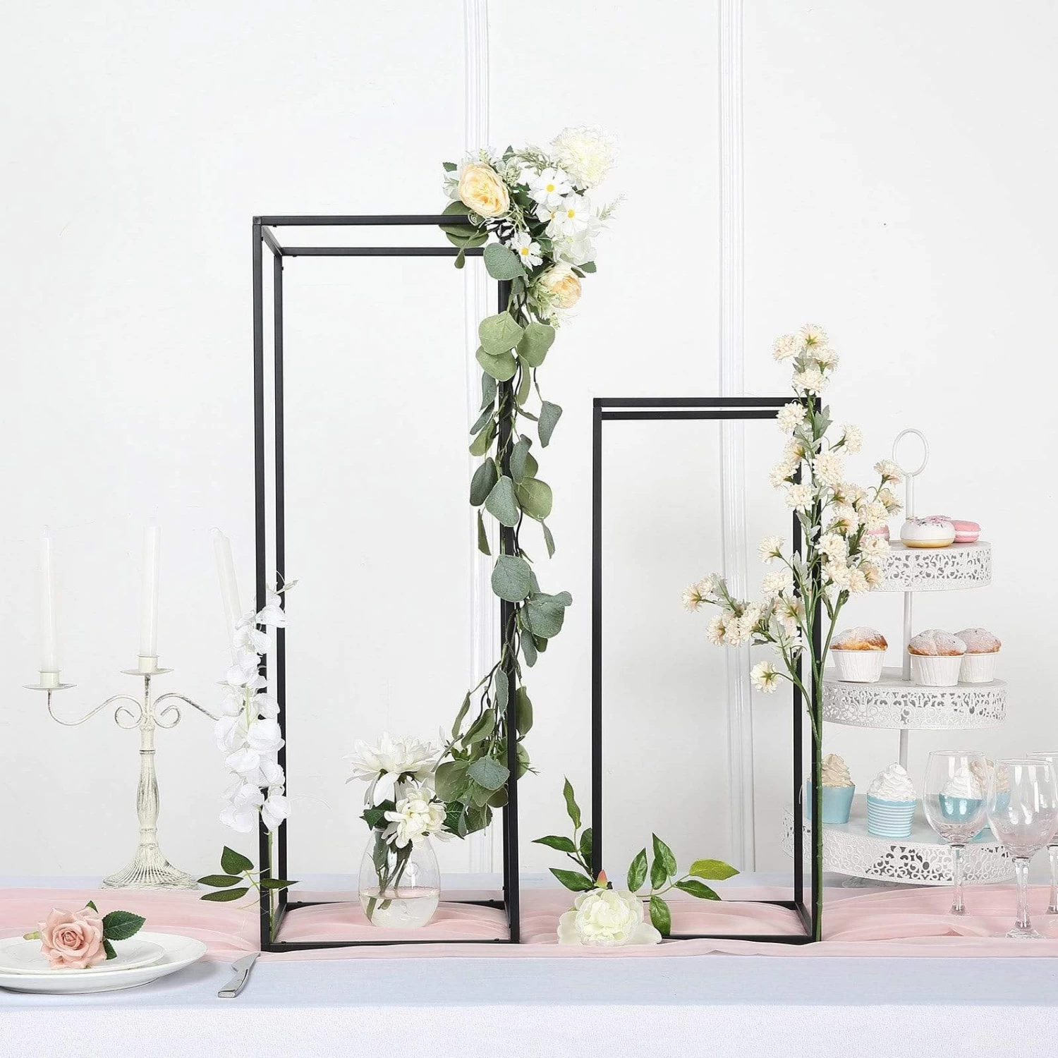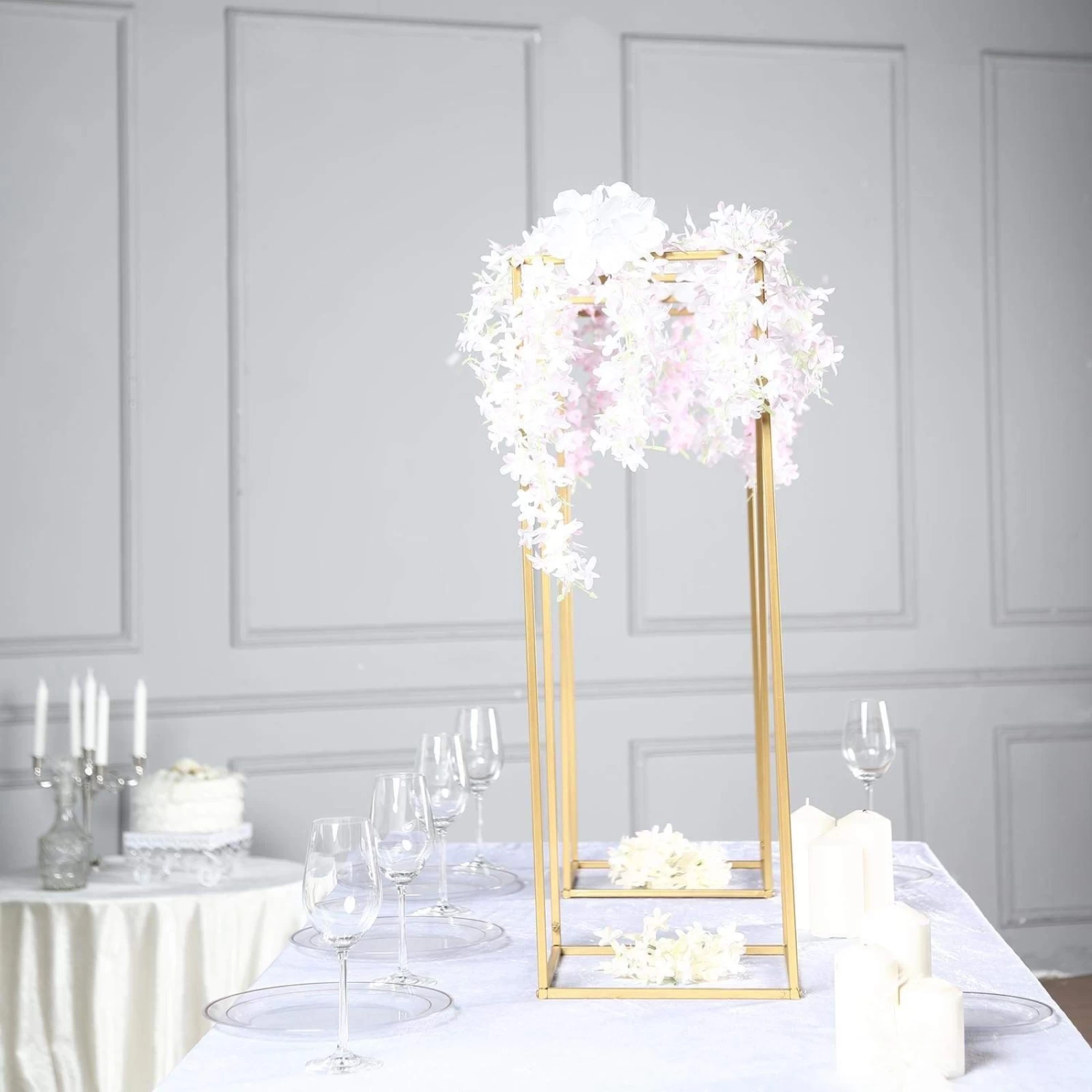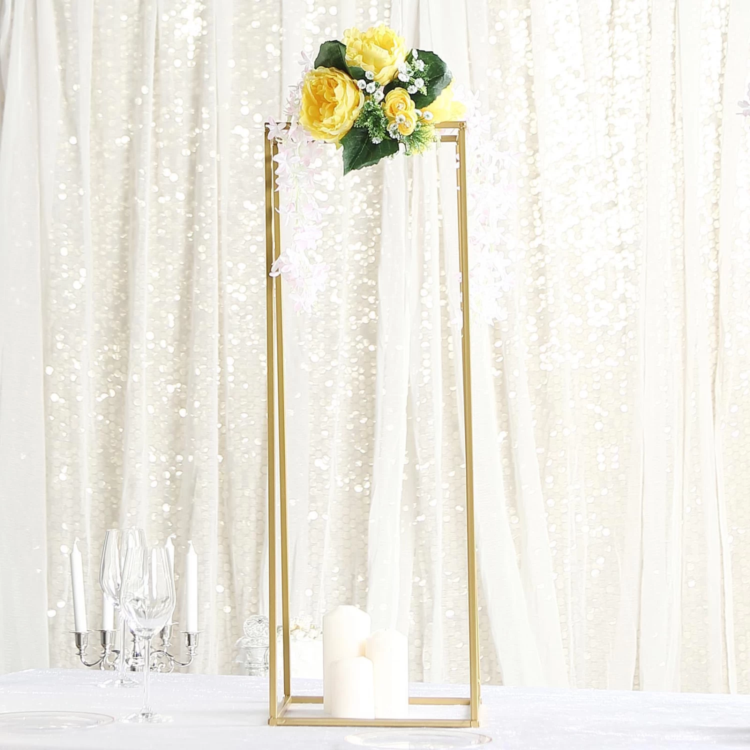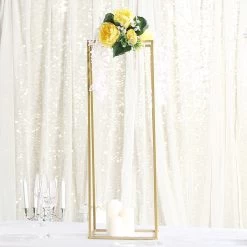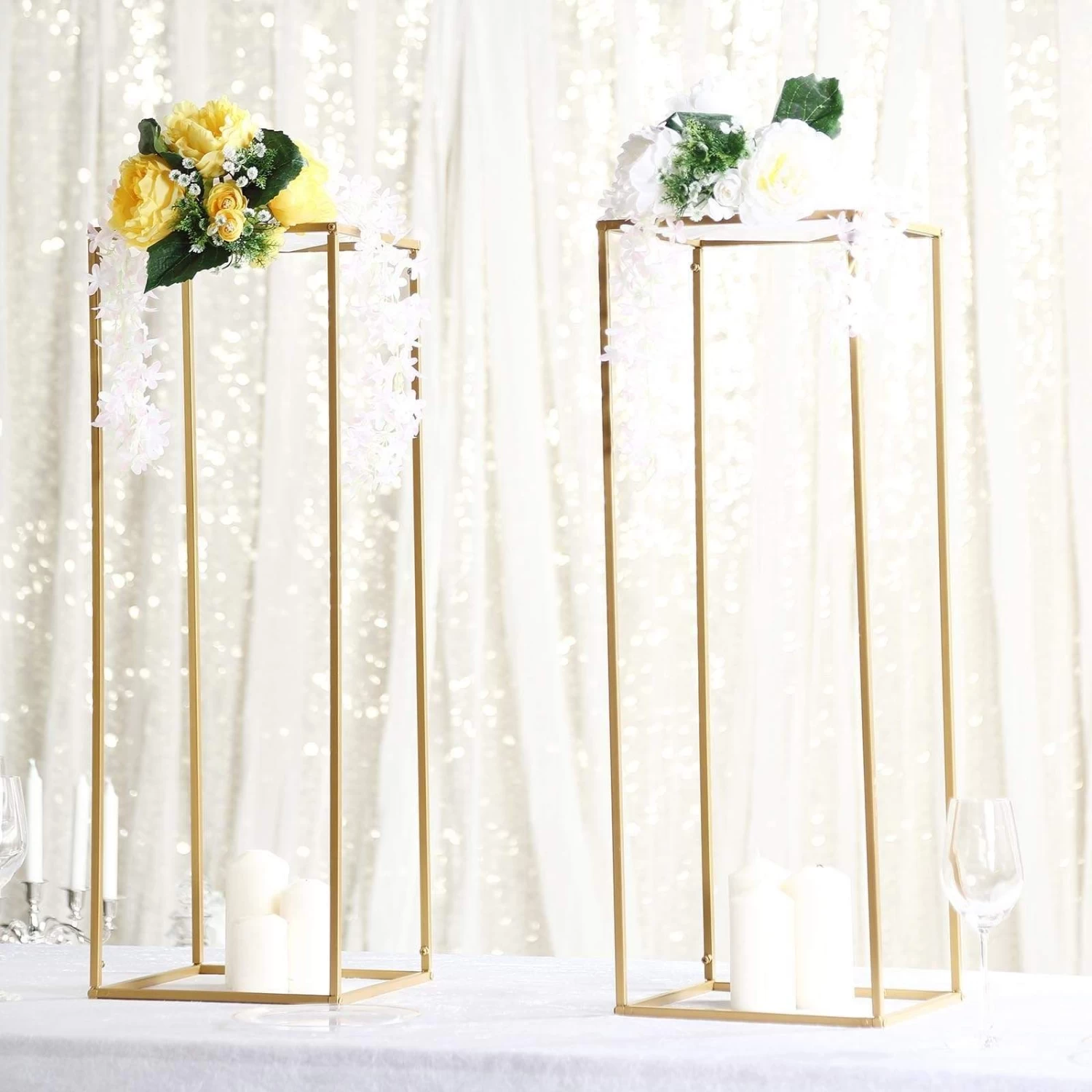 Enhance up your special day with our geometric flower vase holders! Crafted from metal, they provide a contemporary look with an openwork, geometric design and a matte gold finish for a modern flair. These stands are easy to pair with other tabletop decorations and can be accented with a variety of flowers, greenery, display boxes or candles. Perfect for weddings, events, and parties as centerpieces, or simply as decorative pieces for your home or office. Also makes a lovely gift.