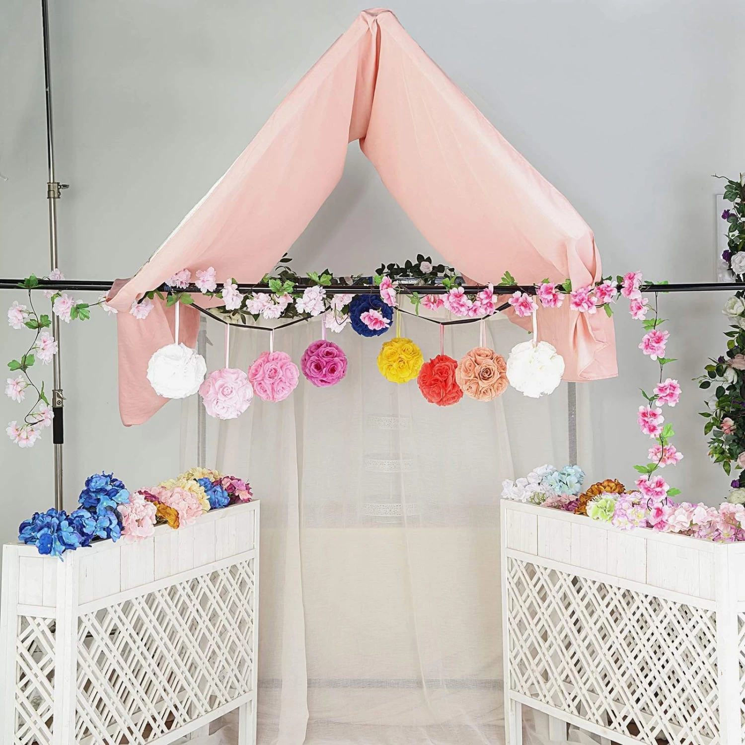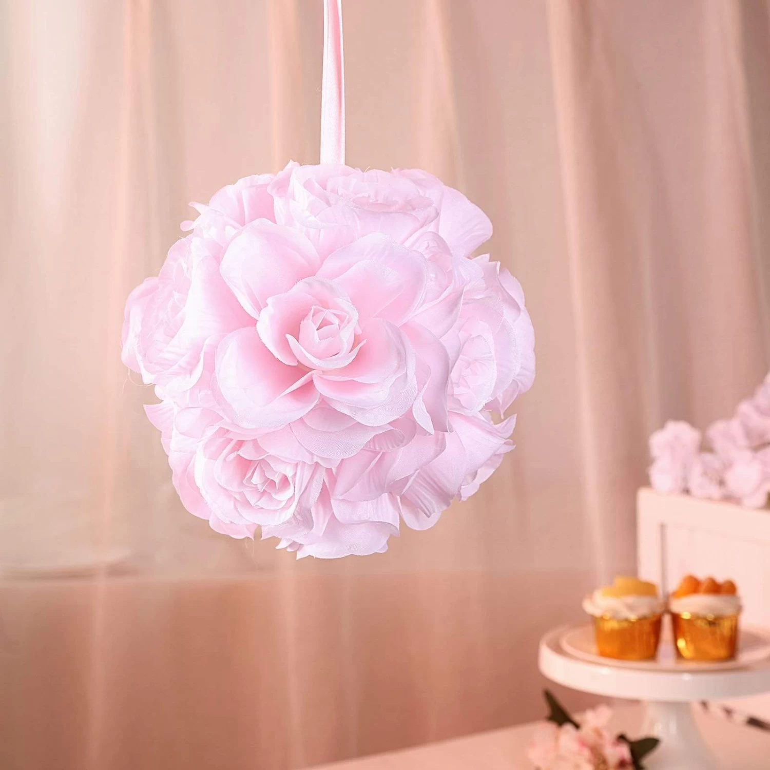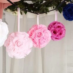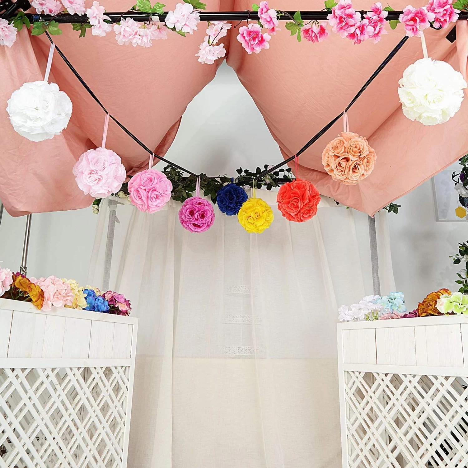 Create the perfect mood for your event with these charming roses kissing flower balls! High-quality silk roses are put together to form a soft, decorative flower ball. Each silk pomander ball has a ribbon so you can easily hang it anywhere you want to bring a pop of colors. Whether for your weddings, parties, events or even in any space in your home, these flower balls will be perfect as centerpieces or as hanging decorations that will last for years.