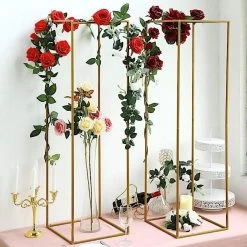 Enhance your special day with our geometric flower stands! Crafted from metal, they provide a contemporary look with an openwork, geometric design and a smooth finish for a modern flair. These stands are easy to pair with other tabletop decorations and can be accented with a variety of flowers, greenery, display boxes or candles. Perfect for weddings, events, and parties as centerpieces, or simply as decorative pieces for your home or office. Also makes a lovely gift.