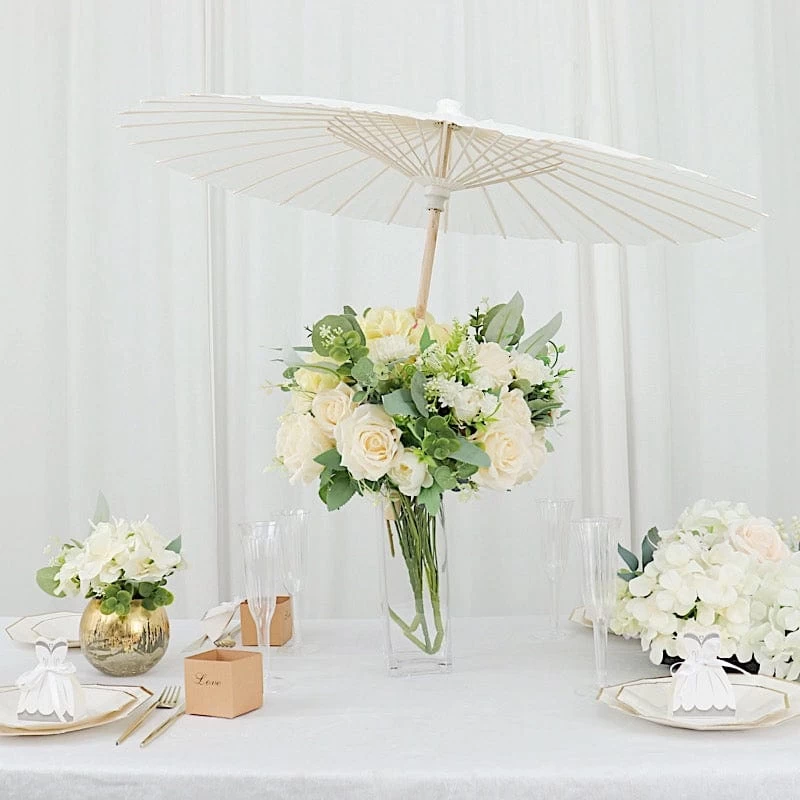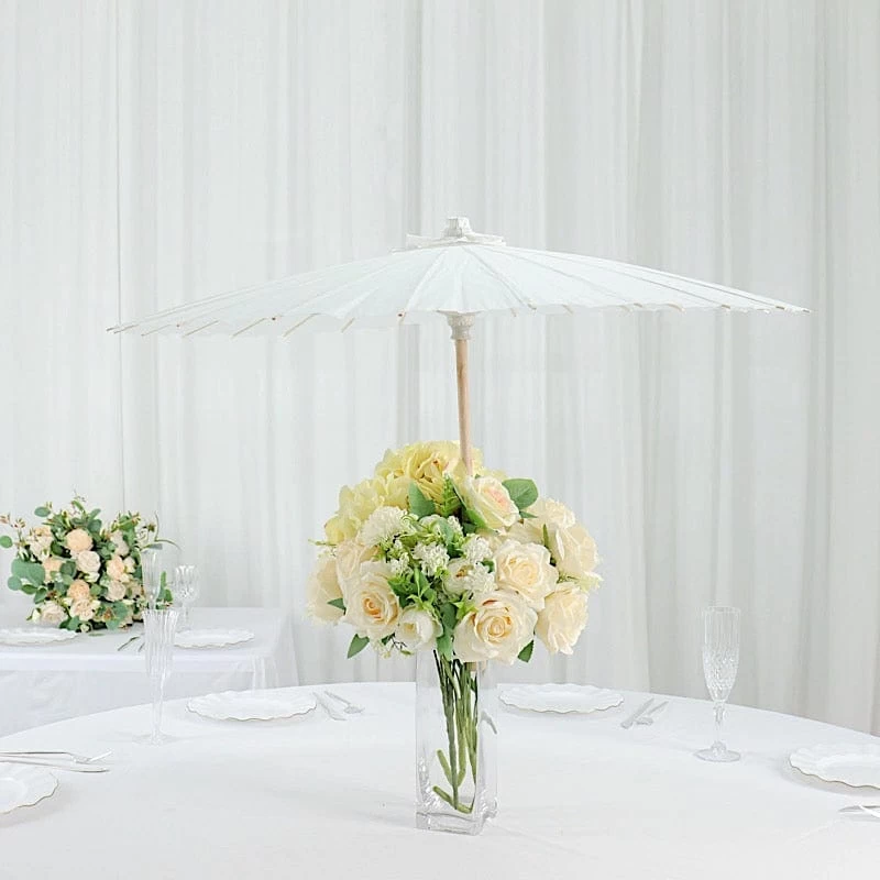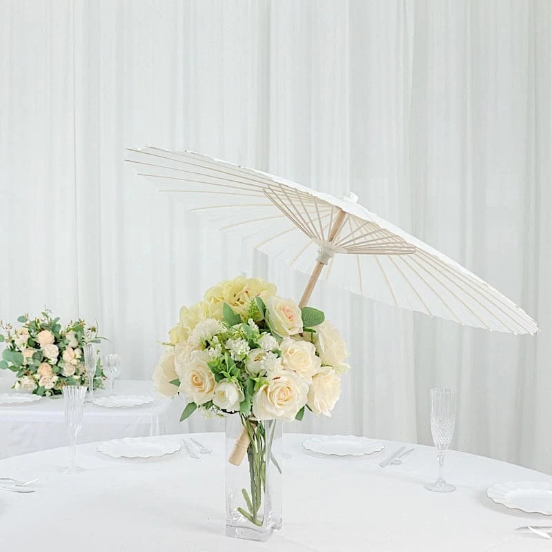 These paper parasols with bamboo wood frames are simple yet elegant and stylish. Whether used as a part of your party decorations or as favors or gifts, these versatile paper umbrellas will surely impress your guests. Decorate with flowers and greenery and hang them upside down from a ceiling. Use them to accent backdrops or photo booth stations for your birthdays, bridal or baby showers, weddings, parties or any special events. You can even use them to create beautiful table centerpieces for your home. The possibilities are endless!
