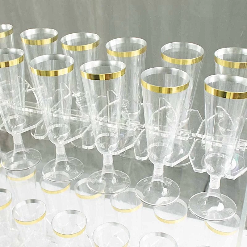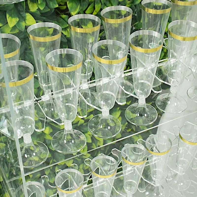 Entertain in style at your next gathering with these functional and easy-to-use champagne stand glass holders. Ideal for creating a double-sided wine glass display on our compatible acrylic champagne stands. These lightweight and durable acrylic hooks are perfect for adding wine glasses holders at home or for serving more beverages for your parties and celebrations. A great way to display and organize your party drinks!