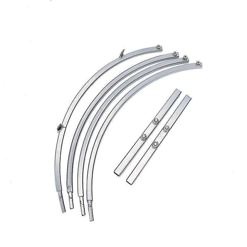 1 metal hoop with base and 1 tool bag per set. Tool bag contains 2 screws and 1 screwdriver.