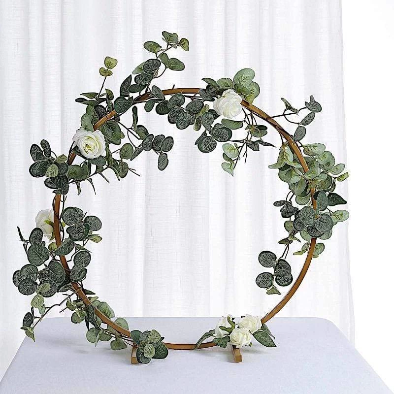 This simple yet attractive metal standing hoop is versatile and easy to match with other party or home decorations. Featuring high-quality metal with an elegant finish, this floral hoop will create a modern minimalist decor in an instant. Accent this centerpiece set with your green plants or gorgeous flowers or garlands and then place atop your tables or anywhere you would like to add a magical refreshing touch. The styling possibilities are endless!