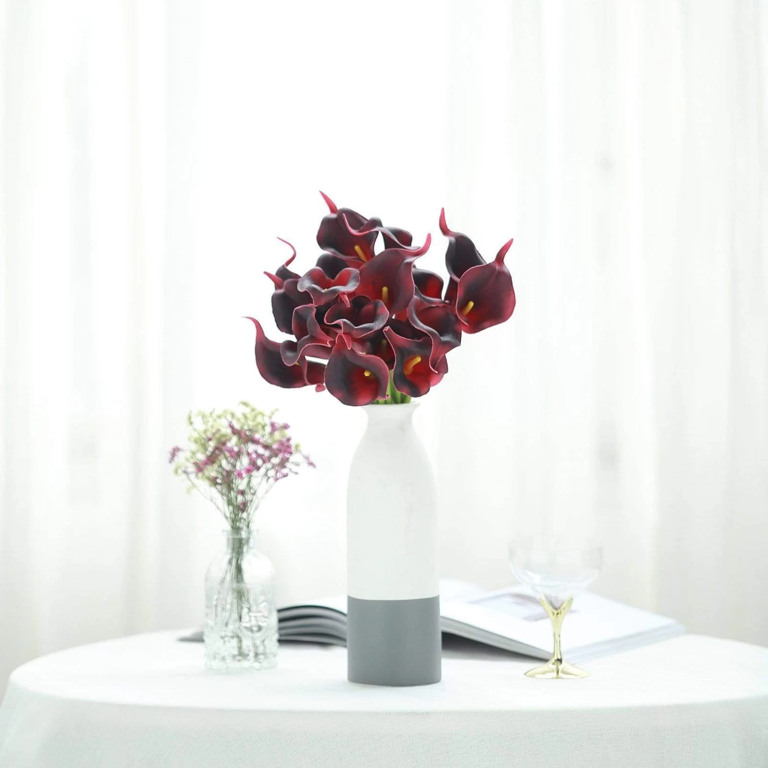 Feel the romantic atmosphere on your reception accented with life-like calla lily flowers from Balsa Circle! Delicate calla lilies are sure to make an excellent addition to your wedding centerpieces or home decorations. Use these flowers with individual stems to enhance any decor or attach them together to create an outstanding and sophisticated floral presentation.