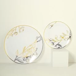 Entertainment just got easier. Serve your guests using these practical yet stylish plates and let your great food speak for itself! High quality plastic plates with a gold floral design will make any dinner or lunch look extraordinary. Perfect choice for fine dining occasions where fast cleanup is a must! Use these round plastic plates for weddings, bridal showers, baby showers, birthday parties or any special events.