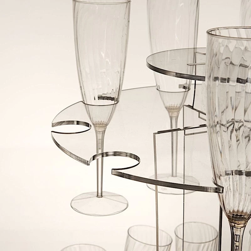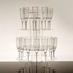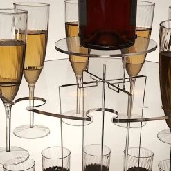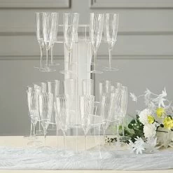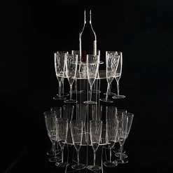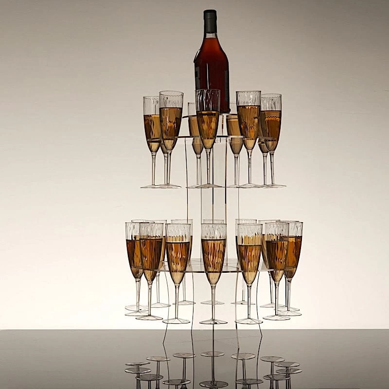 Entertain in style at your next gathering with this elegant standing champagne glass holder. Ideal as wine glasses storage at home or beverage server for your parties and celebrations. This acrylic stand is designed with round plates to hold 23 champagne glasses and a top plate to hold your wine bottle. A great way to display and organize your party drinks. Place it on top of your drinks table and pair it with your garlands, flowers and balloons to create a refreshing atmosphere for your party setting.