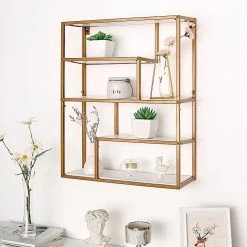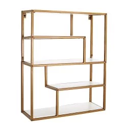 This geometric hanging shelf is a great choice for creating an eye-catching mixed metal and wood accent on your walls. Perfect for adding a modern touch to your living space! Use this stylish floating shelf to showcase your succulents, cute potted plants, flowers, candles, jars or any small decor and then hang on your walls or place it on your mantels or tables as a centerpiece to display any decorative accents. It can also be used as a cupcake or dessert stand for parties, events or for your home. This floating shelf is just the perfect pick if you like to create a minimalistic look for your space. Also a great gifting idea.